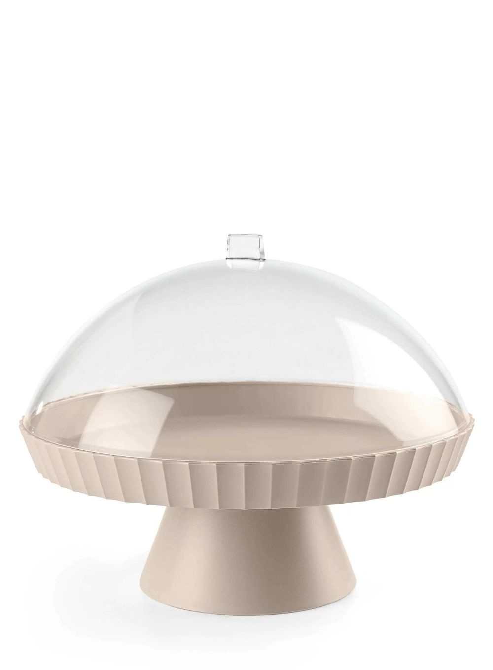 Patera do ciast, deserów z przezroczystą pokrywą i łopatką do serwowania Blim+ Agora Ø 30 cm zabezpiecza jedzenie przed brudem, kurzem, wilgocią, pozwala zachować świeżość i pięknie je prezentuje.