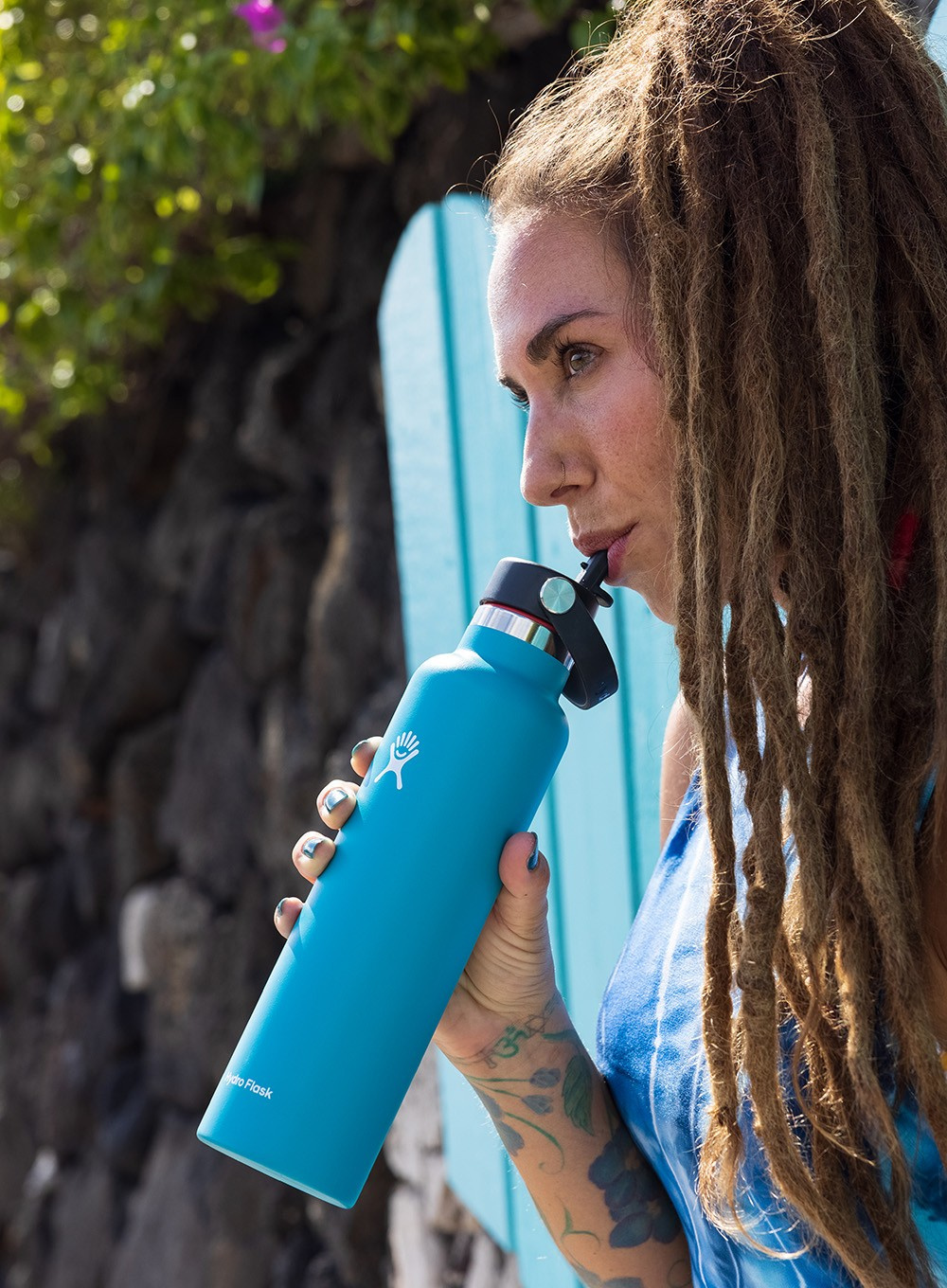 Obróć i wygodnie popijaj przez słomkę z butelki termicznej Hydro Flask Standard Mouth Flask Flex Straw Cap 0,621 l.