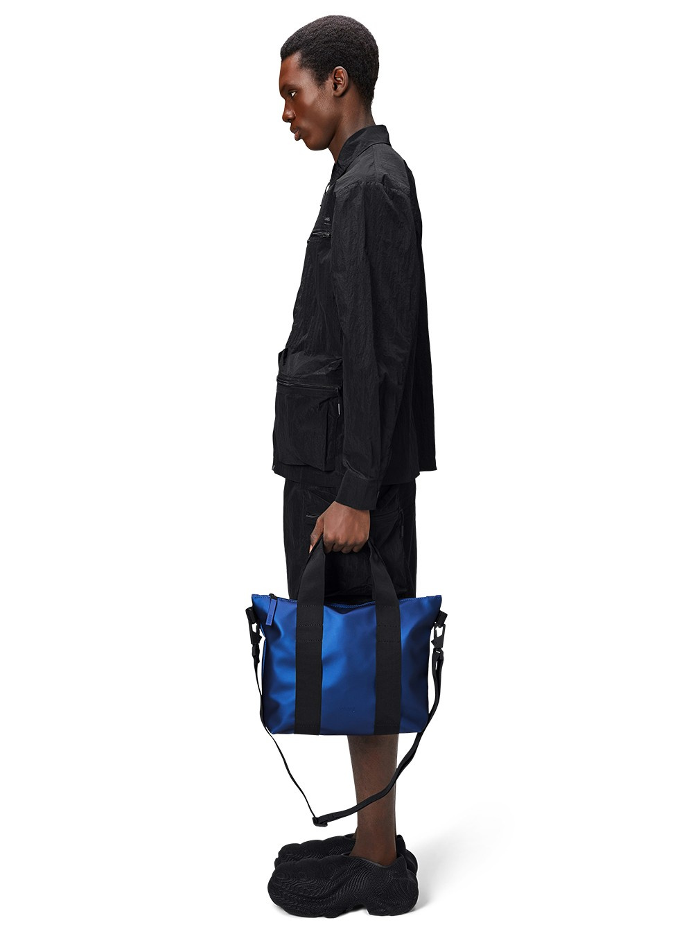 Rains Tote Bag Micro to kompaktowa wodoodporna torba idealna na codzienne niezbędne rzeczy. Projekt jest wykończony dyskretnymi funkcjonalnymi detalami, które nadają mu użytkowy i nowoczesny wygląd.
