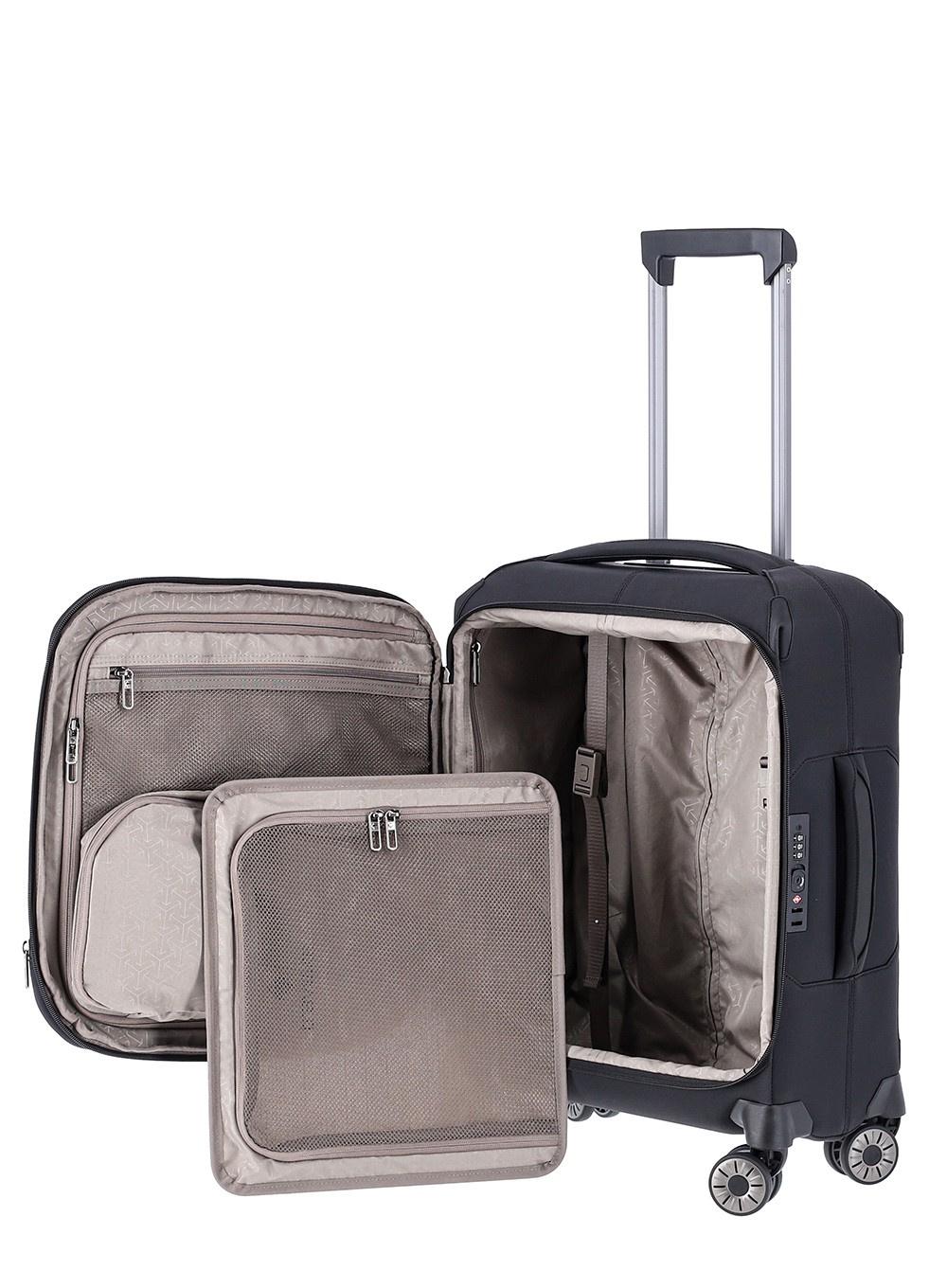 Unikalna konstrukcja z włókna szklanego sprawia, że walizka jest wyjątkowo stabilna i gwarantuje długą żywotność. Dzięki materiałowi zewnętrznemu wykonanemu z wytrzymałego nylonu pochodzącego z recyklingu jest również przyjazna dla środowiska i przetrwa wiele sezonów podróżowania. Zintegrowany klin poszerzający pozwala na zwiększenie pojemności w razie potrzeby. Oprócz dobrze zorganizowanemu wnętrza o wysokiej jakości, mała walizka zachwyca wieloma pomysłowymi i praktycznymi detalami.