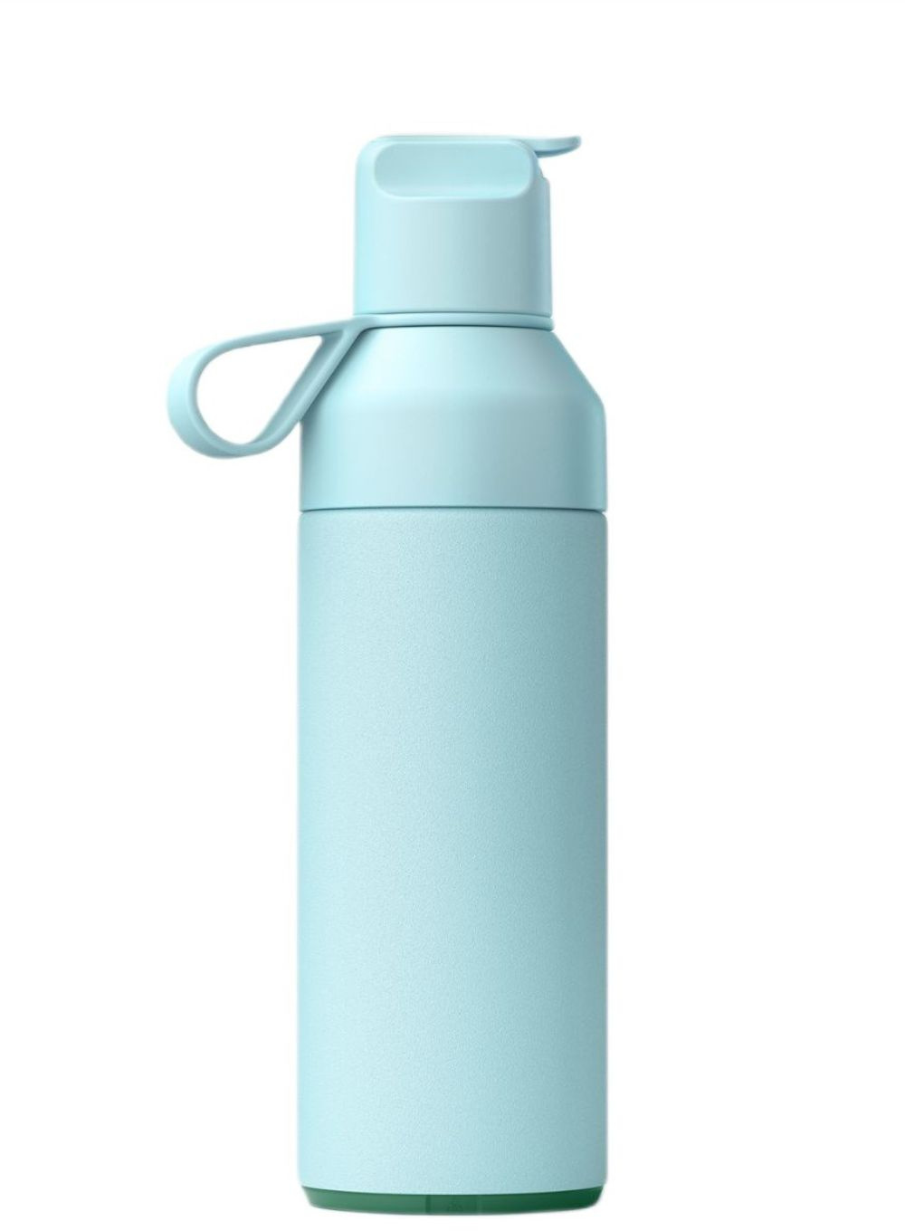Butelka termiczna Ocean Bottle Go 500 ml wykonana z izolowanej próżniowo stali nierdzewnej o podwójnych ściankach i materiałów pochodzących z recyklingu, jest szczelna, bez efektu kondensacji i można ją myć w zmywarce, a wszystko to pomaga chronić ocean. Lód, kawa, woda, koktajle i smoothies dobrze smakują dzięki podwójnej pokrywce i podwójnemu otwarciu, które pozwala z radością popijać, napełniać i czyścić.