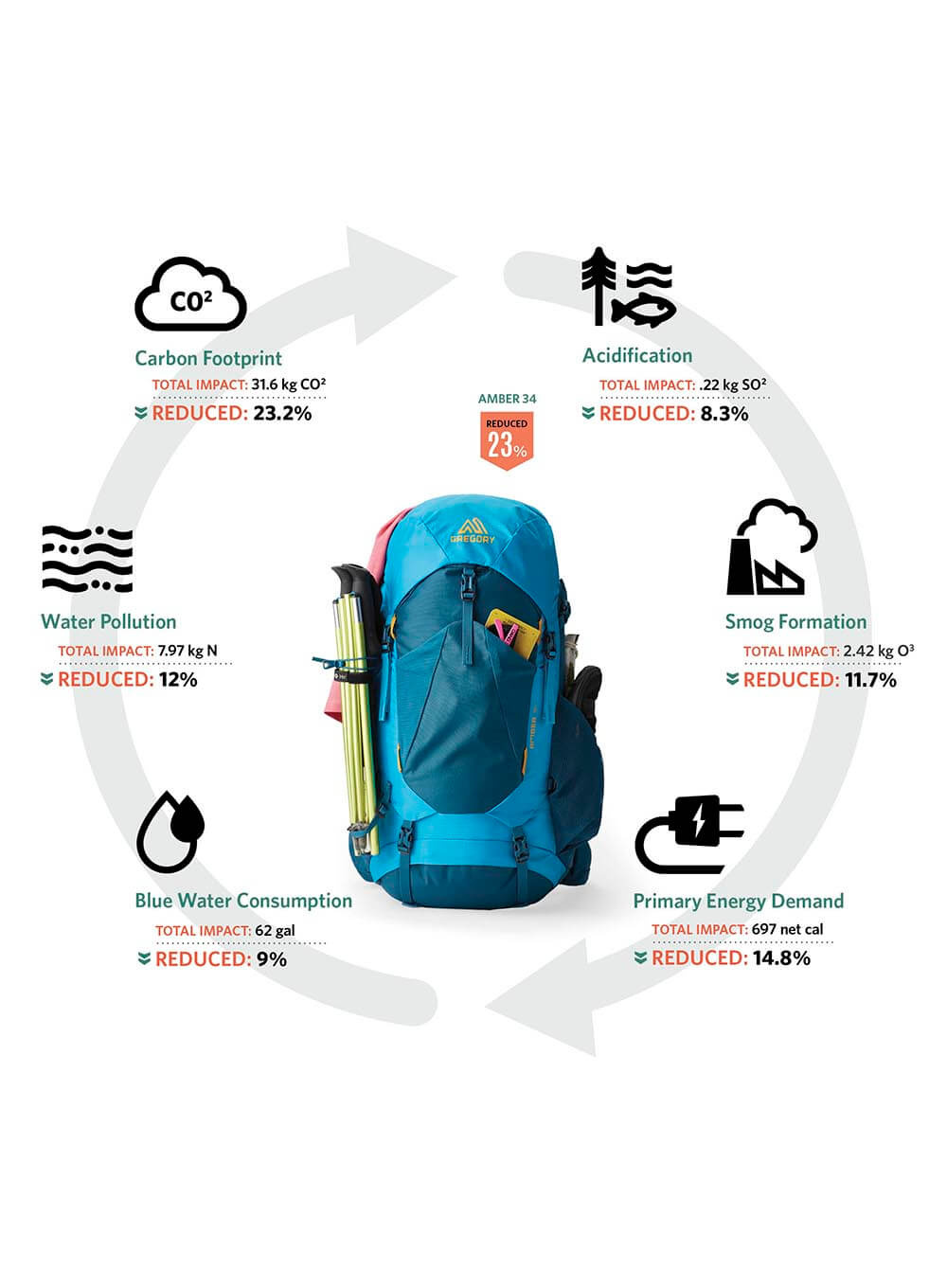 • ​Materiał: korpus: nylonu 210D z recyklingu 40% / nylonu o dużej gęstości 420D z DWR bez PFAS; podstawa: nylon 420D z DWR bez PFAS; uprząż/pas biodrowy/lędźwiowy: pianka o wysokiej gęstości o zamkniętych i otwartych komórkach; podszewka: poliester 135D 40% z recyklingu pokonsumenckiego z DWR bez PFAS; stelaż: rama ze stali stopowej i wspornik krzyżowy z włókna szklanego i HDPE