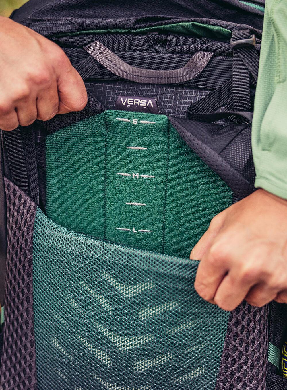 • Regulowany system nośny VersaFit; dzięki płynnej regulacji w zakresie 10 cm oraz regulowanej długości tułowia w modelach Stout i Amber można je dopasować indywidualnie, aby zmaksymalizować komfort na szlaku