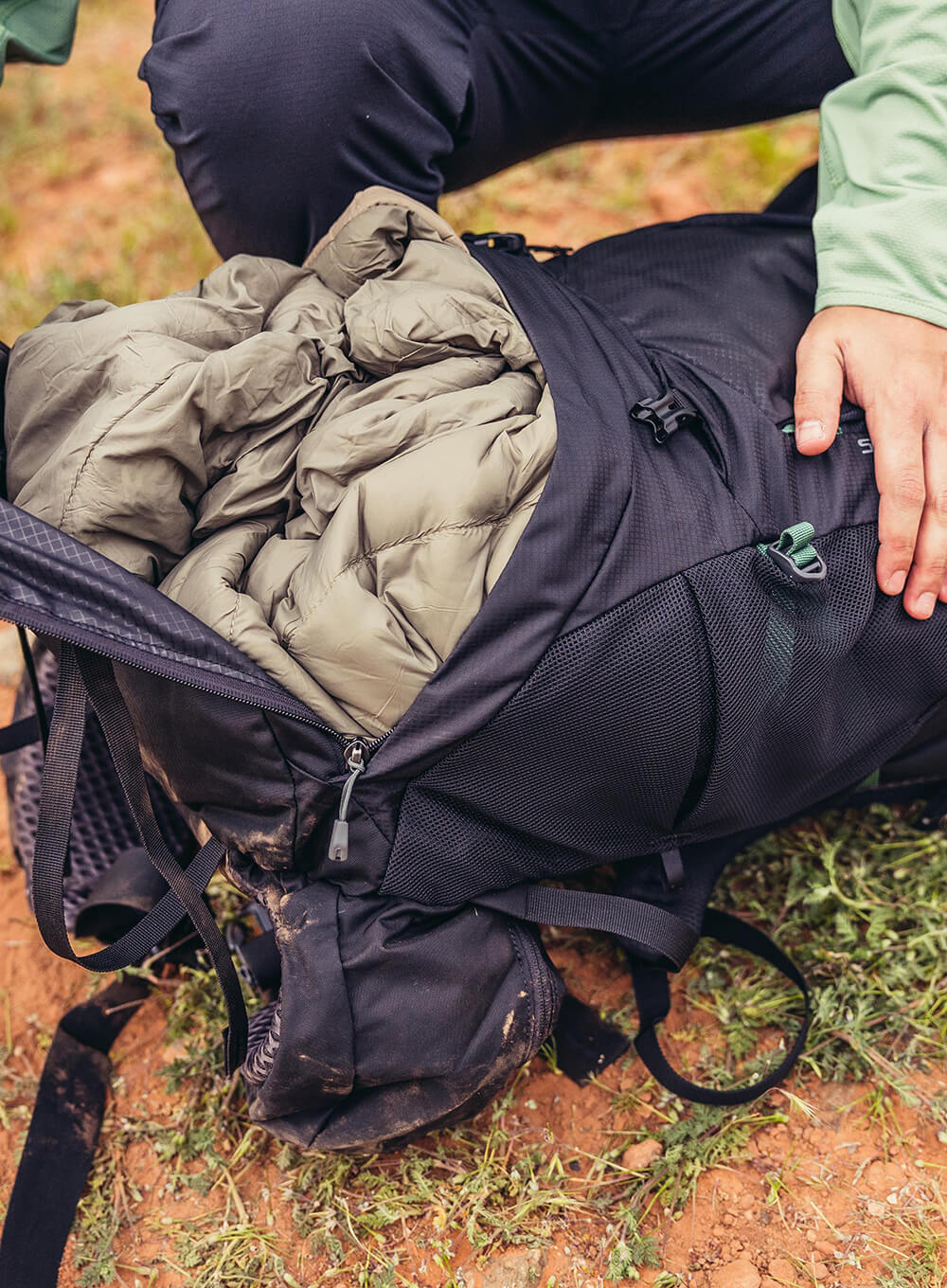 Duży, pojemny plecak Gregory Stout 70 oferuje sporo miejsca, abyś nie musiał się ograniczać pakując swój ekwipunek. Do komory głównej dostaniesz się tradycyjnie przez górny otwór znajdujący się pod pokrywą i zamykany ściąganym sznurkiem lub od dołu, gdzie znajduje się komora, który umożliwia dostęp do schowanego na dnie śpiwora.