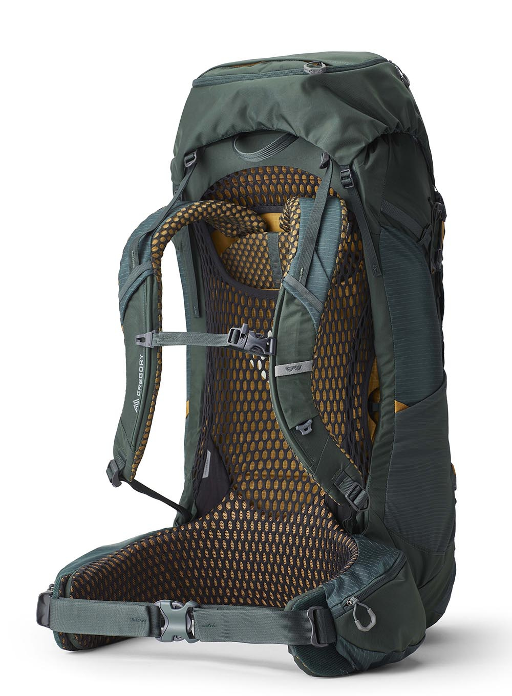 Plecak górski Gregory Katmai 55 posiada szeroki pas biodrowy, który pozwala na odciążenie ramion poprzez przeniesienie ciężaru na dolną część pleców. Dodatkowo produkt firmy Gregory ma pas piersiowy, regulowany poziomo, jak i pionowo, pozwoli to poprawić stabilizację całego bagażu. O to, by plecak przylegał do ciała podczas wędrówki, zadbają również specjalne pasy przy ramionach, które pomogą poprawić kąt nachylenia modelu.