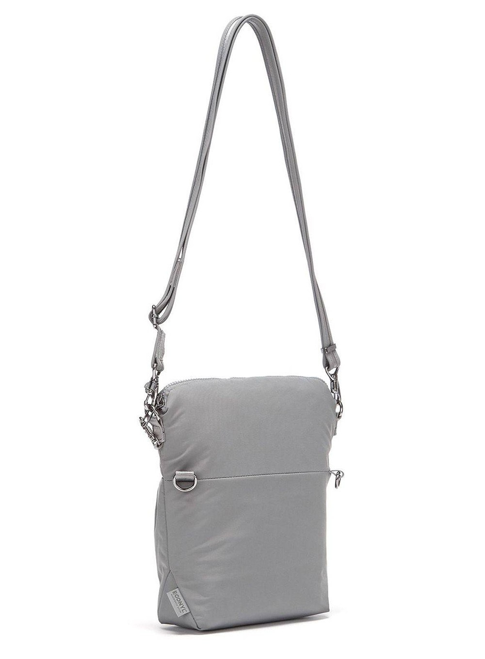 Torebka damska Pacsafe CX Convertible Crossbody jest wykonana z pokonsumenckiego poliestru pochodzącego z recyklingu (rPET), co odpowiada 3 plastikowym butelkom pochodzącym z recyklingu.