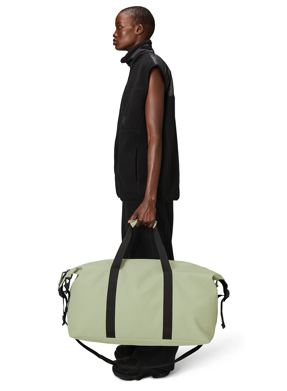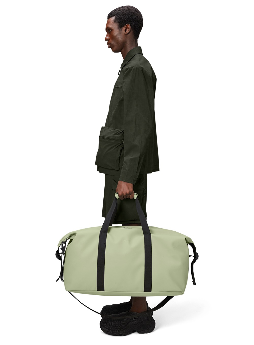 Torba weekendowa Hilo Large jest wykonana z charakterystycznej dla firmy Rains wodoodpornej tkaniny PU, którą zaprojektowano z myślą o wytrzymałości, trwałości i gładkości w dotyku.