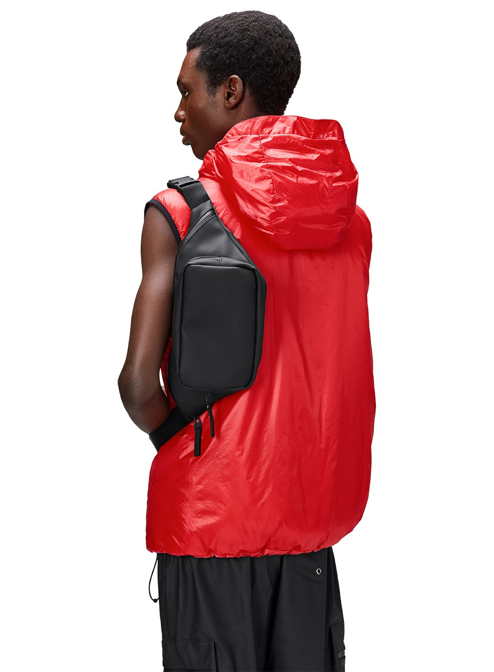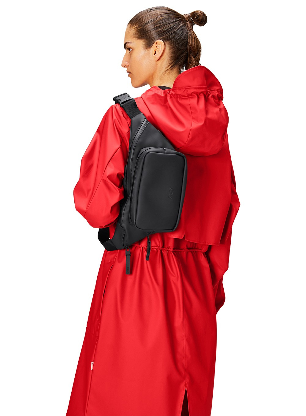 Torba biodrowa wykonana jest z charakterystycznej dla firmy Rains wodoodpornej tkaniny PU, zaprojektowanej z myślą o wytrzymałości, trwałości i gładkiej w dotyku.