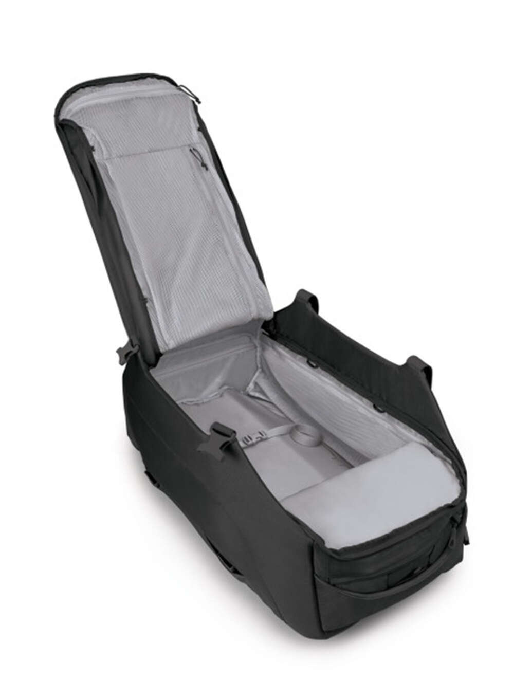• Rozkładana, wyjmowana uprząż AirScape i pas biodrowy do opcjonalnego noszenia plecaka