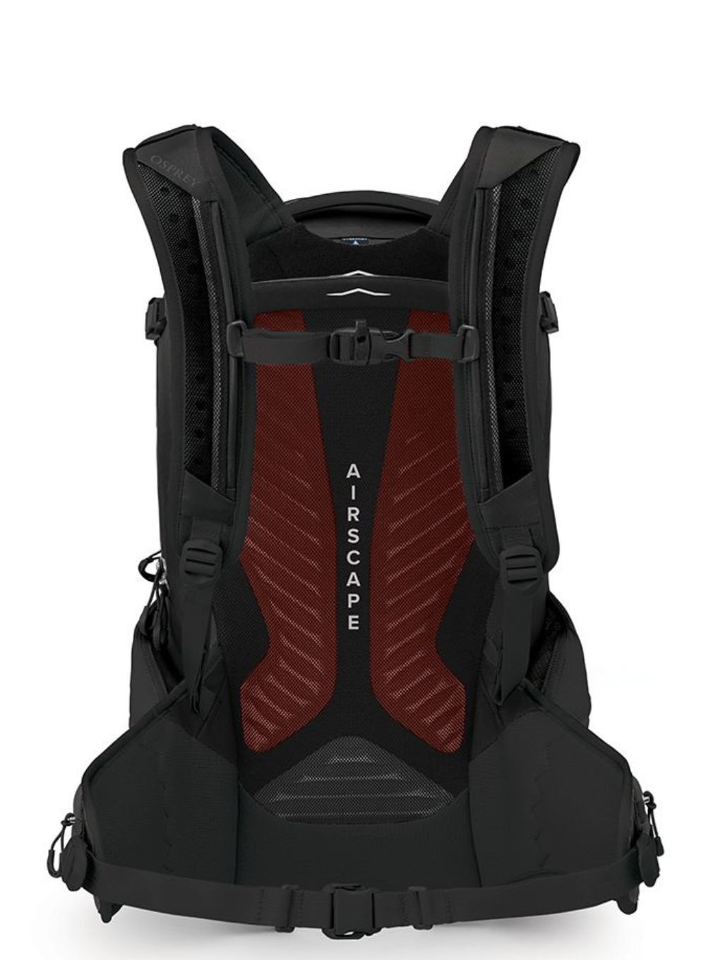 AirScape™ to system nośny Osprey, na który składają się piankowe grzebienie panelu tylnego, pas biodrowy, pasy ramienne zapewniające komfort, idealne dopasowanie i stabilność nawet z maksymalnym obciążeniem. AirScape™ utrzymuje ciężar plecaka blisko ciała, a piankowe kanały zapewniają przestrzeń dla przepływu powietrza. Materiały siatkowe użyte w tym systemie odprowadzają pot, wspomagają chłodzenie i chronią przed odparzeniami. AirScape™ zapewnia stabilność i jest stosowany zarówno w lekkich plecakach, jak i dużych plecakach do wymagających wędrówek.