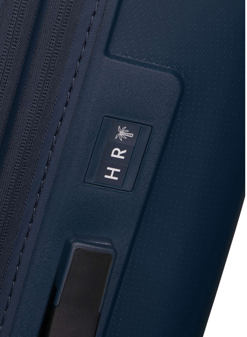 Przemyślane, praktycznie zaprojektowane wnętrze ma  podszewkę wykonaną z materiału z recyklingu. Standardowy podział wnętrza walizki na dwie komory ułatwia organizację i segregację zabieranych rzeczy; w górnej komorze walizki znajduje się przegroda z materiału, na której dodano zasuwaną kieszeń, a dolna komora ma zasuwaną kieszeń na drobne akcesoria i pasy mocujące utrzymujące wszystko na miejscu.