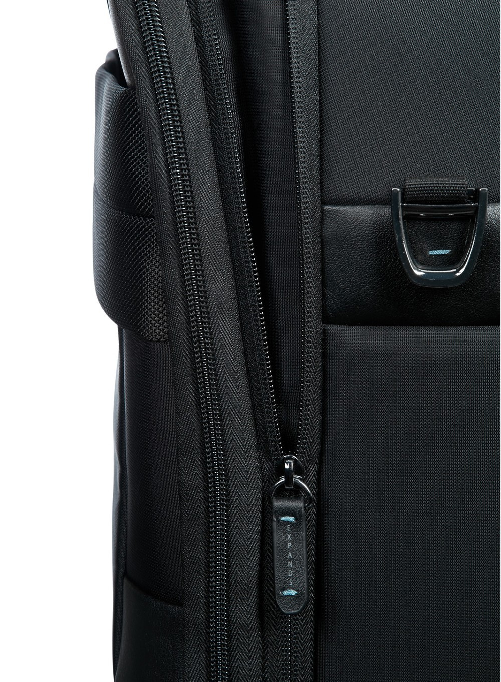W dużej przedniej kieszeni z organizerem zmieści się mały notatnik, telefon, długopisy, karty, dokumenty podróże. System EasyPass na kable umożliwia ładowanie tabletu lub komputera bez ich wyjmowania.