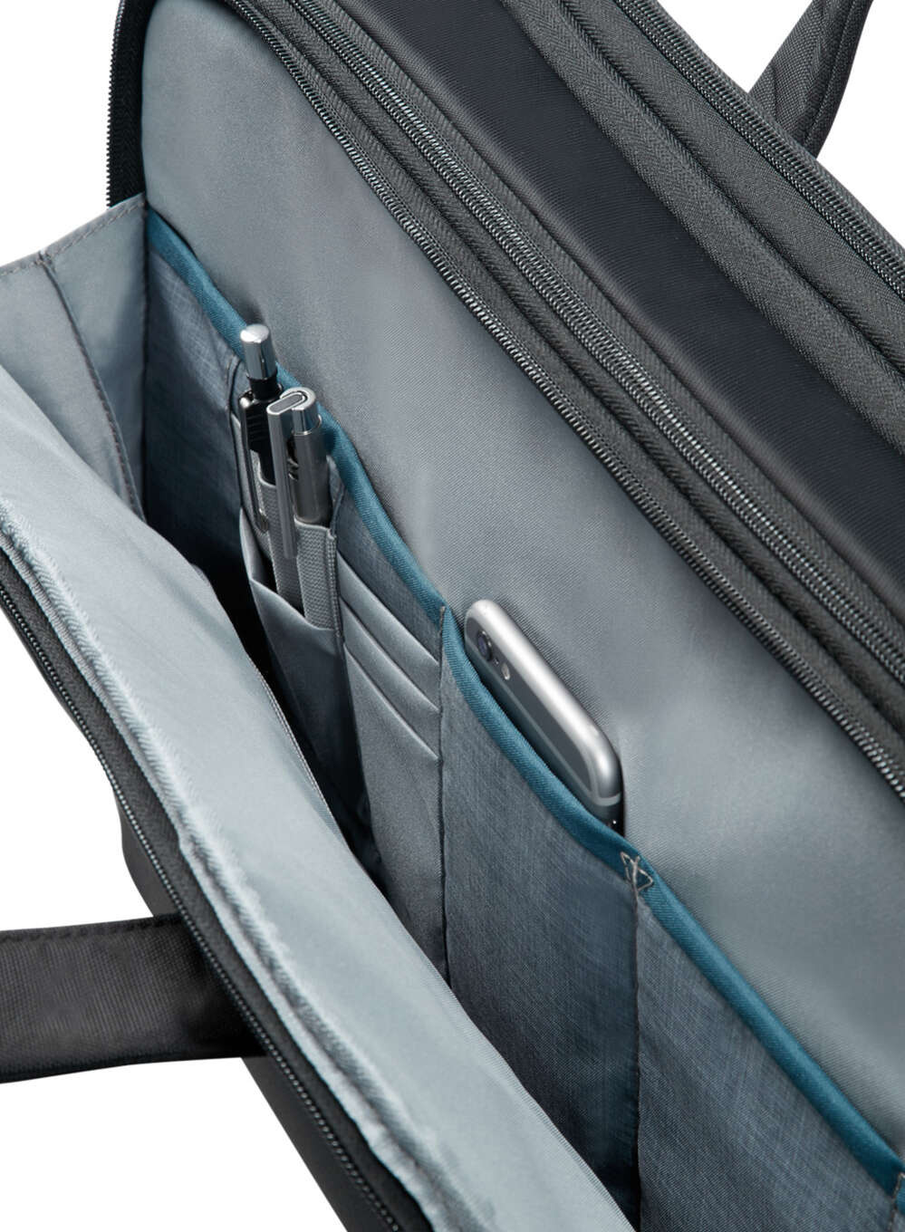Torba biznesowa Samsonite Spectrolite 2.0 posiada 2 oddzielne komory, które zapewniają doskonałą organizację jej zawartości. Komputer o przekątnej 15,6 cala i tablet można przechowywać w dedykowanej komorze głównej w wyściełanych, dobrze chroniących kieszeniach. Zamek błyskawiczny można zabezpieczyć kłódką aby uniknąć kradzieży.
