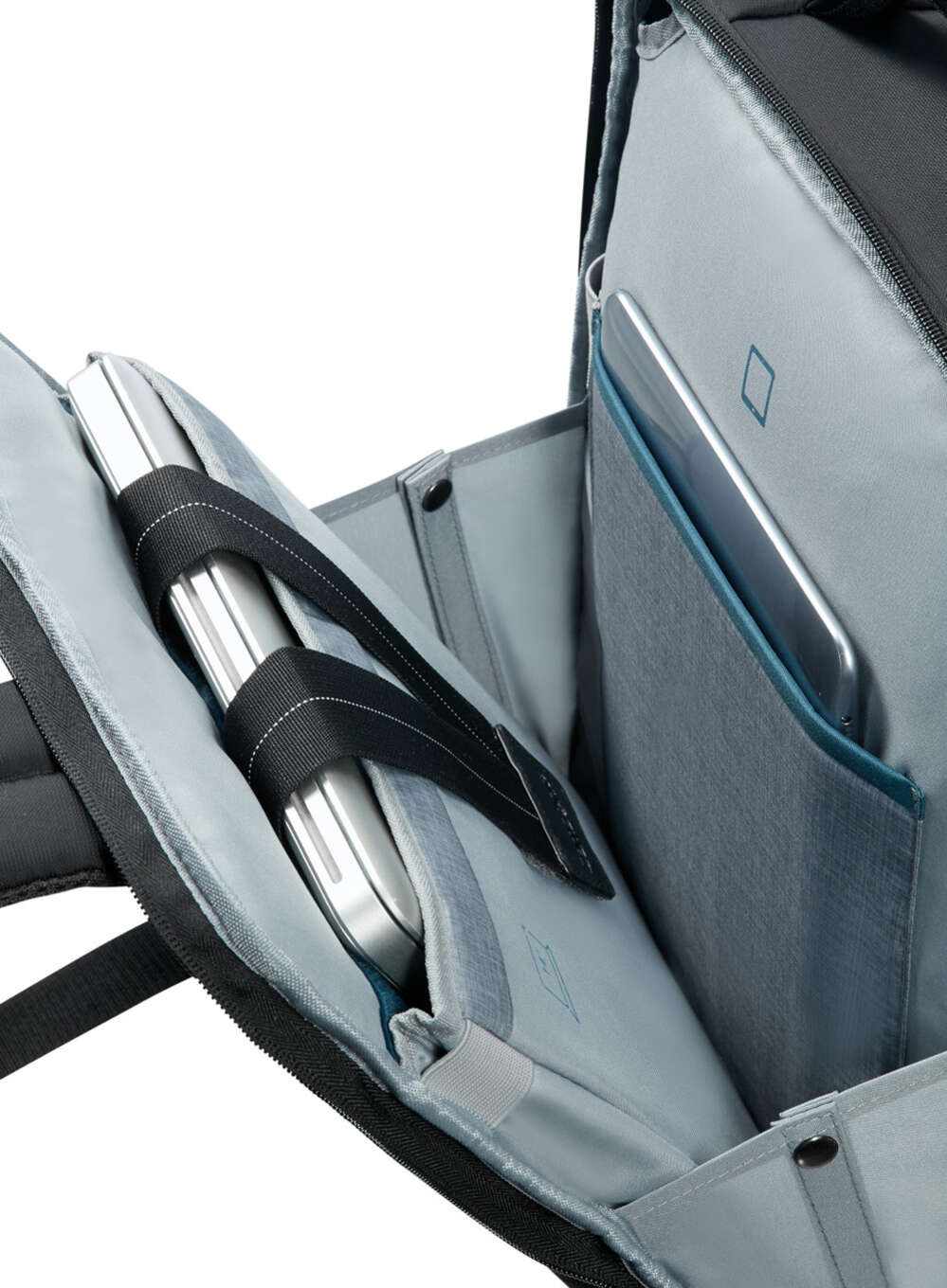 Rozszerzany plecak Samsonite Spectrolite 2.0 posiada 2 oddzielne komory. Pierwsza zapewnia dobrą ochronę komputera i tabletu o przekątnej 15,6 cala przed wstrząsami. Laptop można zabezpieczyć za pomocą paska na rzep. W drugiej komorze znajduje się duża kieszeń na dokumenty, w której zmieszczą się na przykład segregatory, podręczniki i czasopisma.