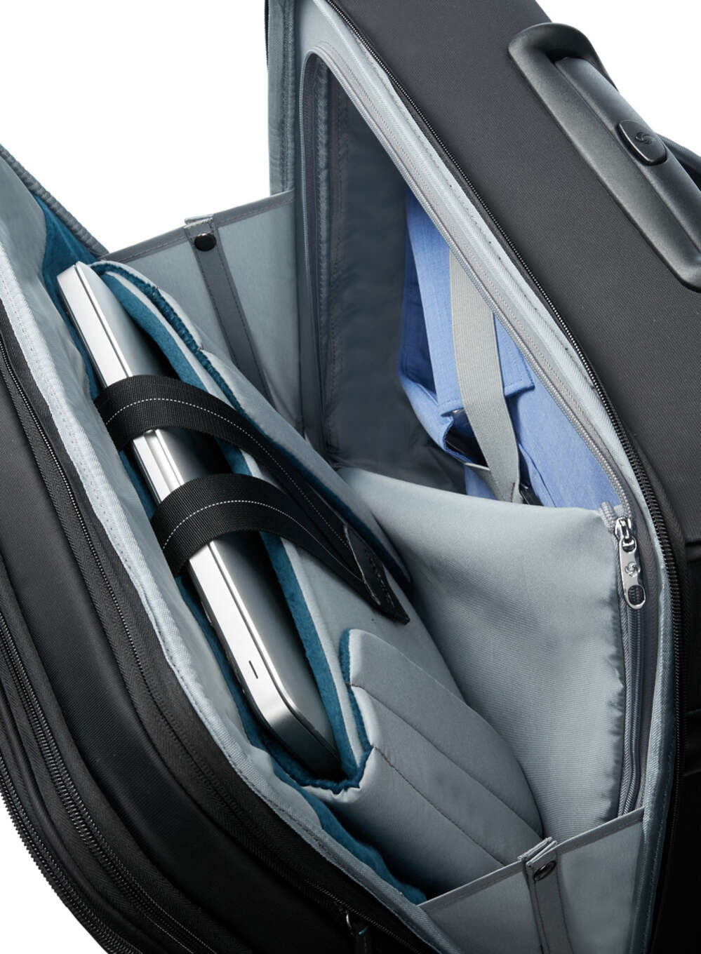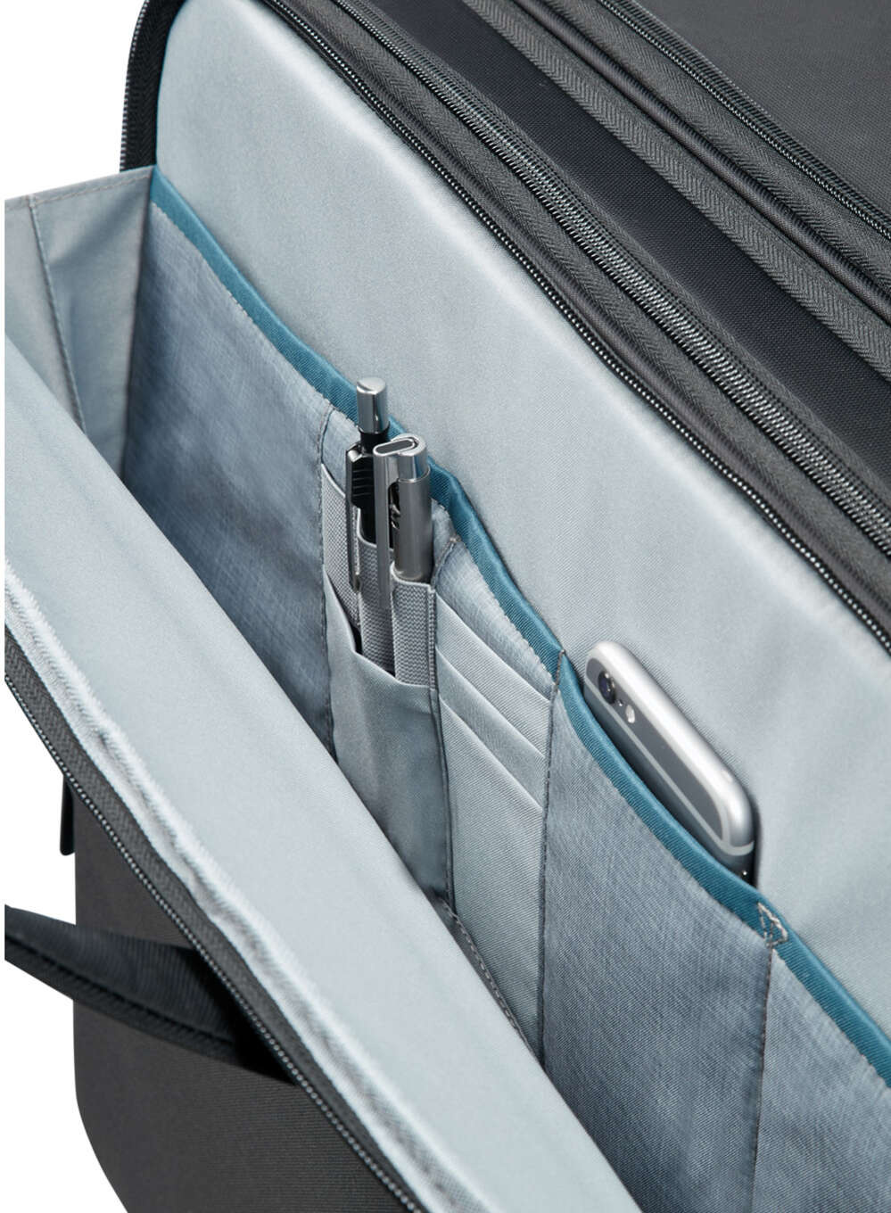 Poszerzana pilotka Samsonite 2.0 Rolling Tote 17,3 EXP to bagaż o wielu aspektach: dzięki wyrafinowanym funkcjom, takim jak powiększana objętość i różne przegródki na telefon komórkowy, tablet, laptop, dokumenty A4, oddzielnej komorze na ubrania, wszystko, czego potrzebujesz w podróży, można łatwo schować.