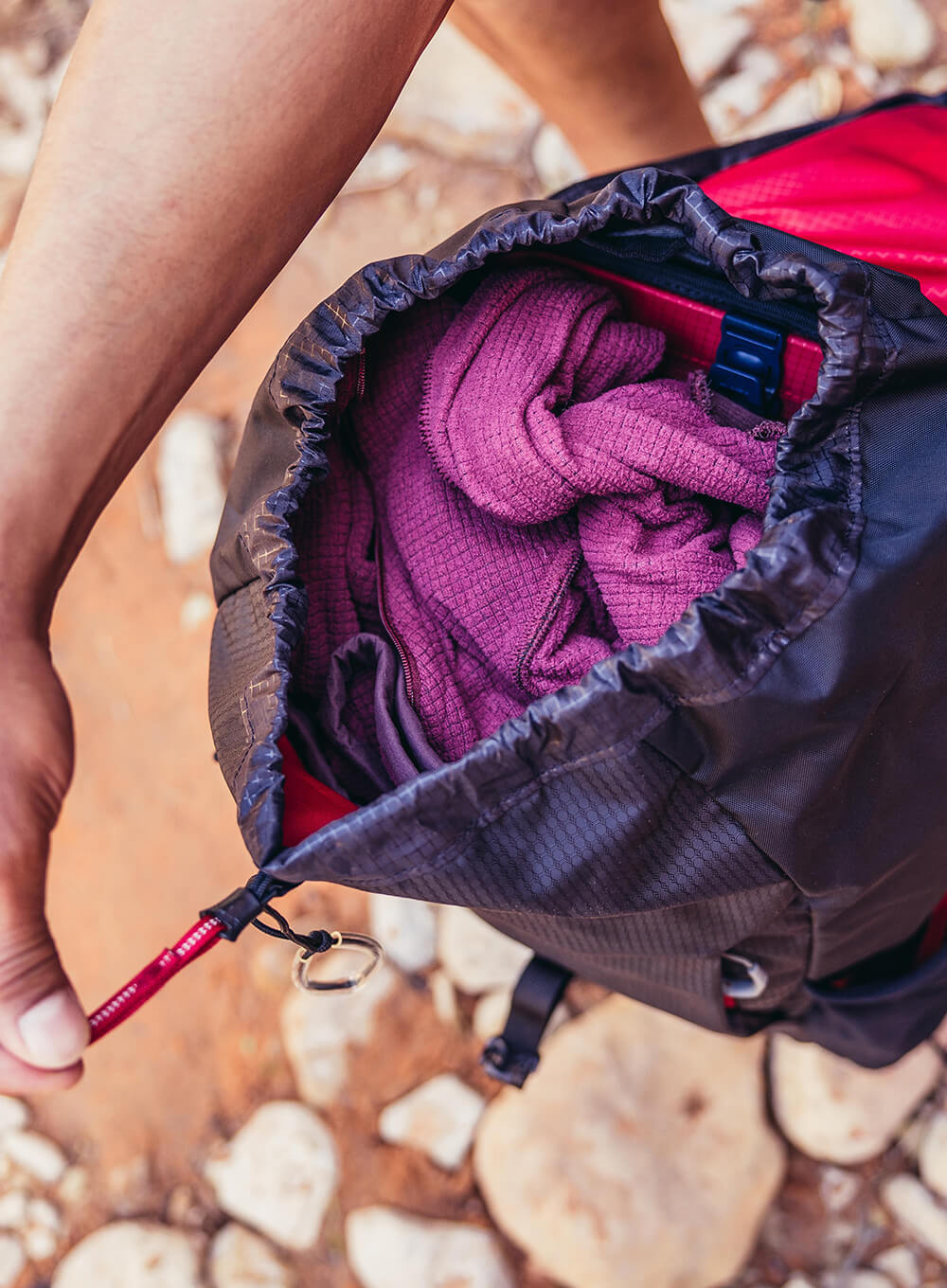 • Konstrukcja ładowana od góry z otworem na sznurek i klapą na klamrę