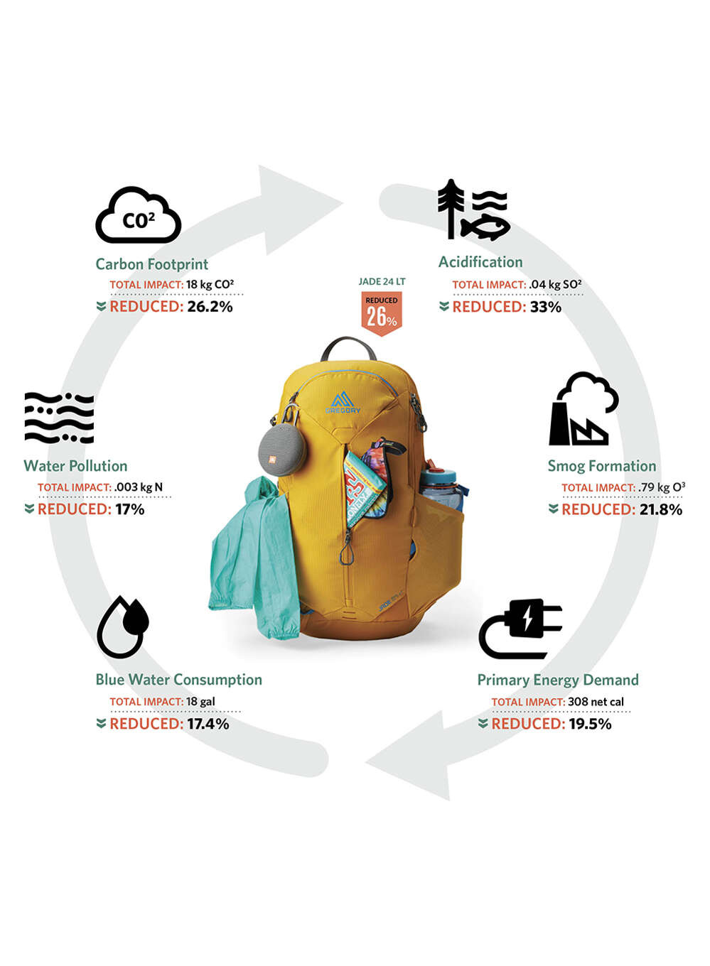 • Model zaprojektowano przy użyciu narzędzia do analizy produktowego cyklu życia, z wykorzystaniem m.in. poliestru z recyklingu, co obniżyło ślad węglowy o 25%