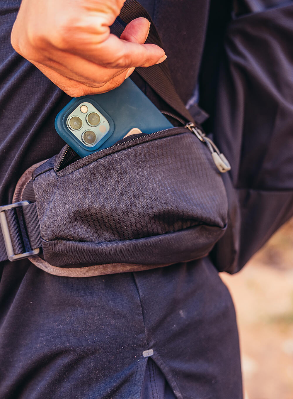 Uchwyć chwilę na szlaku dzięki dużym kieszeniom w pasie biodrowym zapewniającym szybki dostęp do telefonu