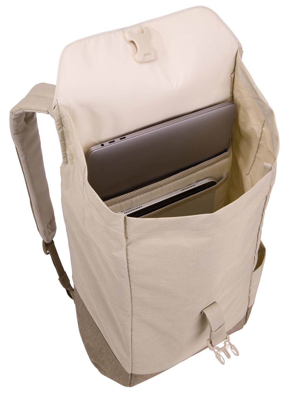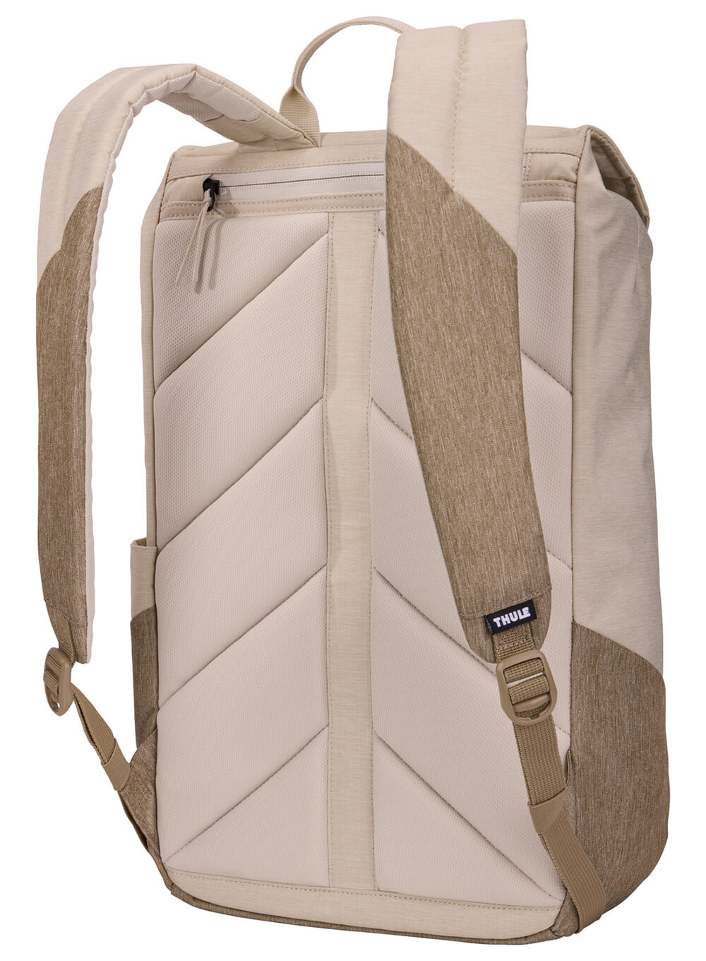 Thule Lithos 16 l zamykany jest na klapę z wbudowaną ukrytą klamrą. Plecy i szelki są miękko wyściełane pikowanym materiałem zapewniającym wygodę w trakcie noszenia. Kompaktowy i smukły kształt sprawia, że plecak świetnie nadaje się zarówno do ubioru casualowego jak i biznesowego.