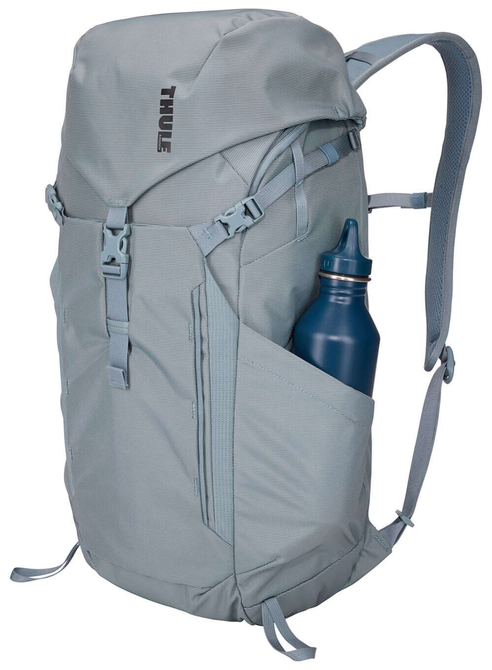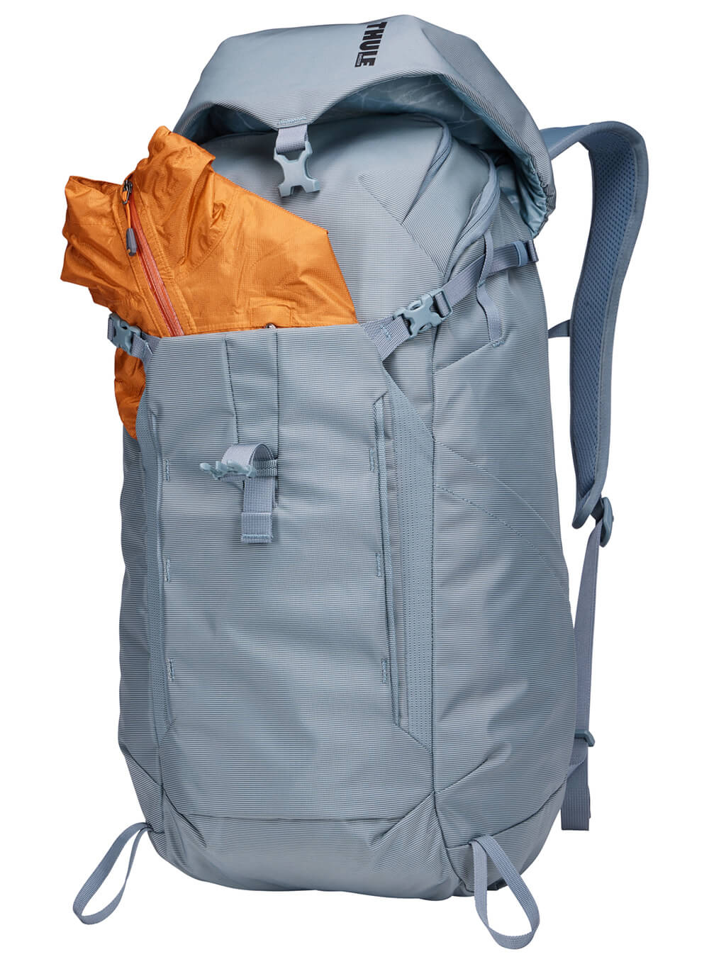 Plecak dzienny Thule AllTrail 25 ma opływowy kształt, jest lekki i oferuje miejsce na cały sprzęt potrzebny podczas jednodniowej wędrówki, ale także podczas wyjścia do miasta. Pojemna komora główna pomieści bukłak lub laptopa, odzież, sprzęt trekkingowy i zawiera kieszeń z pokrowcem przeciwdeszczowym. Boczne elastyczne kieszenie stanowią dodatkową przestrzeń bagażową na drobniejsze przedmioty jak butelką z napojem. Przednia rozciągliwa kieszeń umożliwia zabranie lekkiej kurtki.