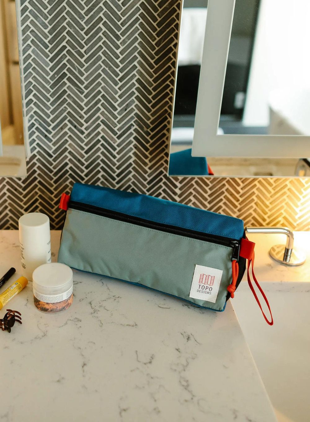 Kompaktowa kosmetyczka podróżna Dopp Toiletry Kit firmy Topo Designs do lekkiego pakowania, zmieści najpotrzebniejsze akcesoria, przybory toaletowe i kosmetyki.
