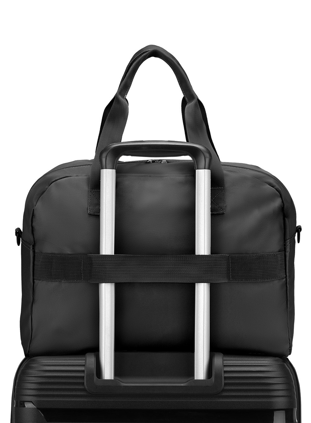Torba jest wyposażona również tylny pasek przelotowy, który można nałożyć na walizkę, dzięki temu idealnie sprawdzi się także w podróży.