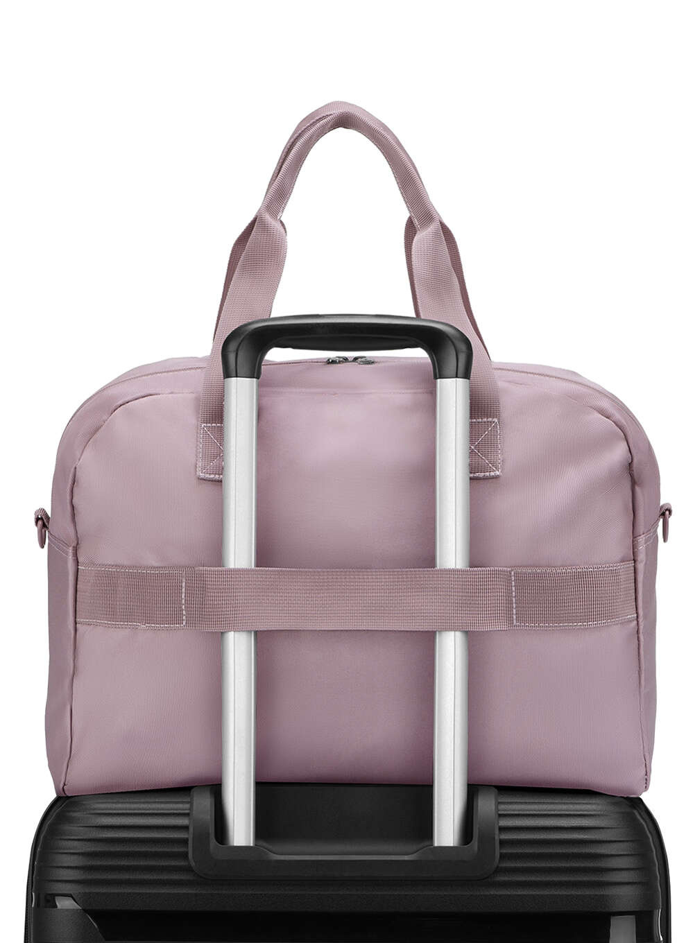 Torba jest wyposażona również tylny pasek przelotowy, który można nałożyć na walizkę, dzięki temu idealnie sprawdzi się także w podróży.