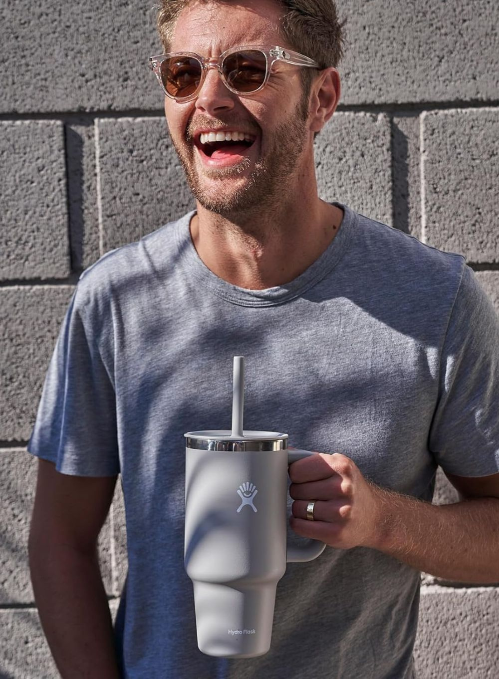 Podróżny kubek termiczny Hydro Flask All Around™ Travel Tumbler 946 ml z uchwytem i słomką do wygodnego picia.