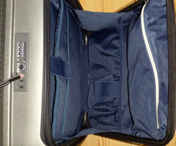 Wewnątrz walizki podróżnej Air Base znajduje jest wykończone wysokiej jakości podszewką z elastycznymi paskami do pakowania, która pozwala na schludne przechowywanie ubrań, butów itp. Dla lepszej organizacji wnętrze posiada również dwie zasuwane przegrody z materiału, z czego jedna wyposażona jest w kieszenie zapinane na zamek - na jeszcze więcej przestrzeni do pakowania!