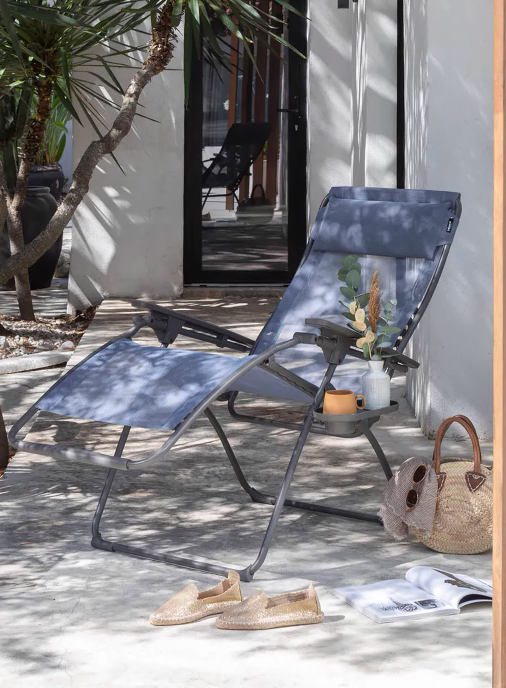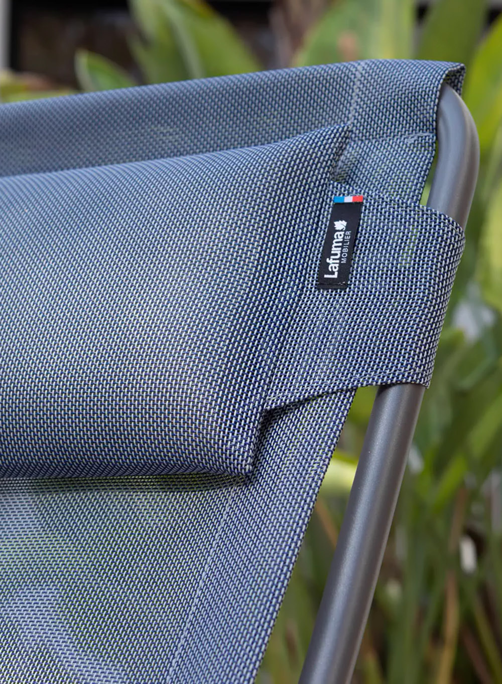 Sekret LAFUMA MOBILIER Relax: fotel został zaprojektowany tak, aby oferować idealną pozycję relaksacyjną. Projekt został opracowany we współpracy z lekarzami, których głównym zaleceniem było osiągnięcie pozycji, w której nogi są uniesione nieco powyżej serca.