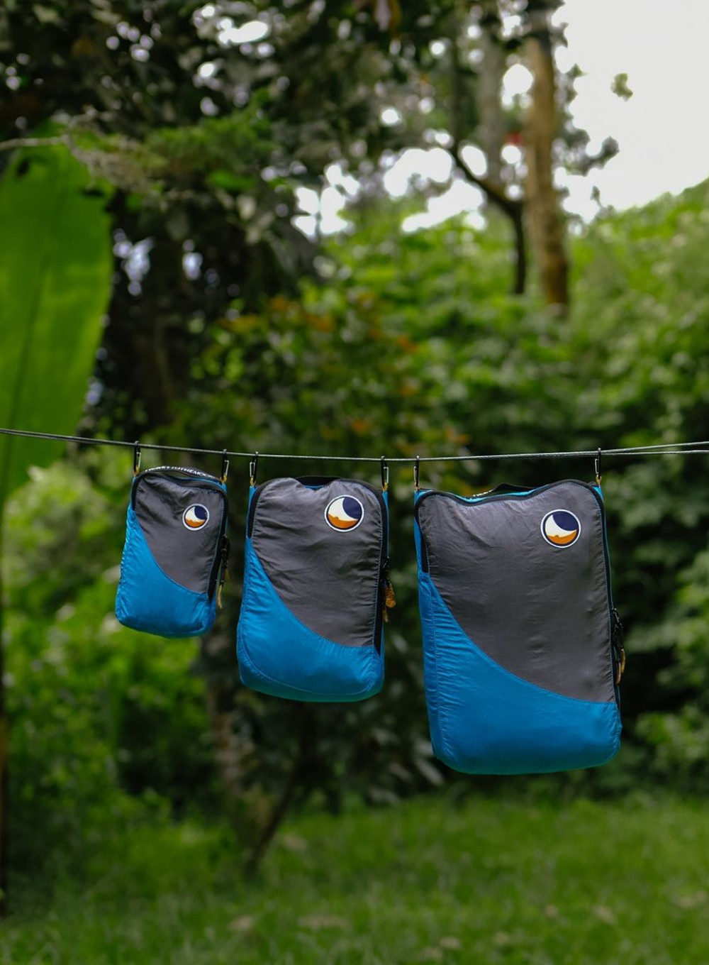 Trwały i stylowy organizer / pokrowiec podróżny o pojemności 6,3 l jest wykonany z resztek materiału pozostałego po procesie produkcji hamaka - z bardzo wytrzymałego jedwabnego nylonu spadochronowego. Pokrowiec posiada uchwyt do przenoszenia na górnej krawędzi oraz długi dwustronny zamek błyskawiczny ze ściągaczem wykonanym z łupin orzecha kokosowego.