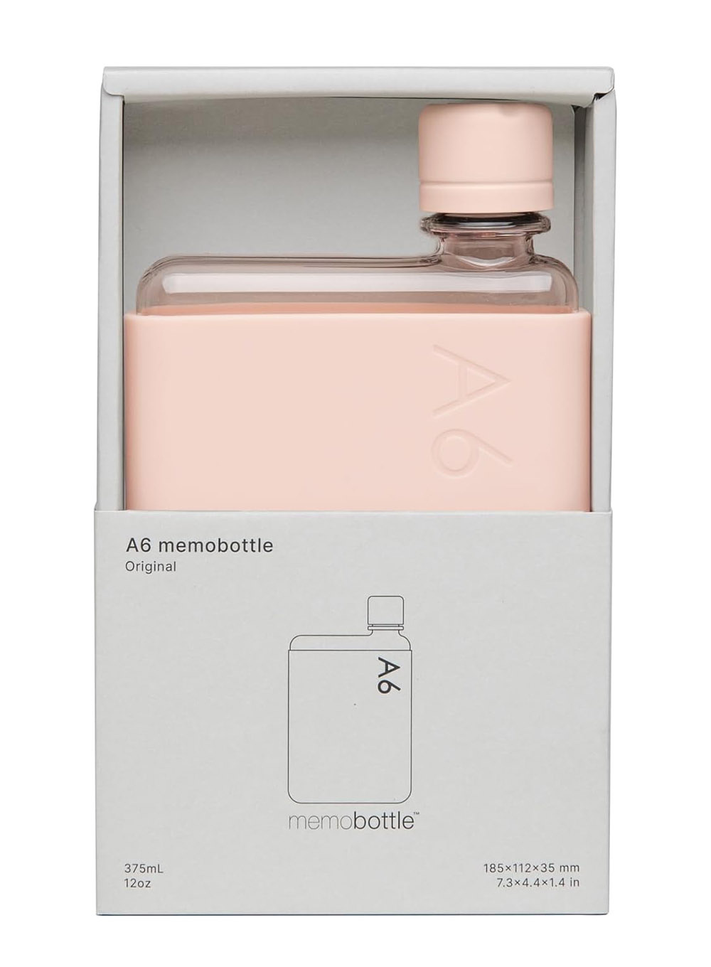 Płaska, oryginalna butelka wielorazowa A6 na wodę Memobttle o pojemności 375 ml. Dbaj o zdrowie swoje i swoich najbliższych.