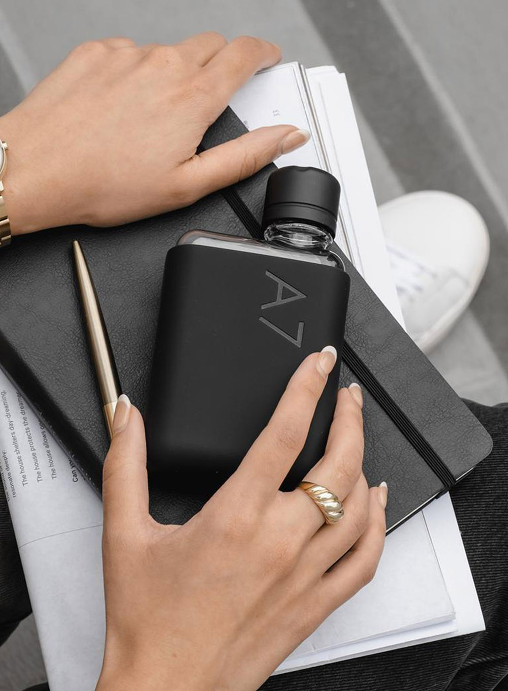 Wielorazowa butelka na napoje Memobottle Original A7 - black ink