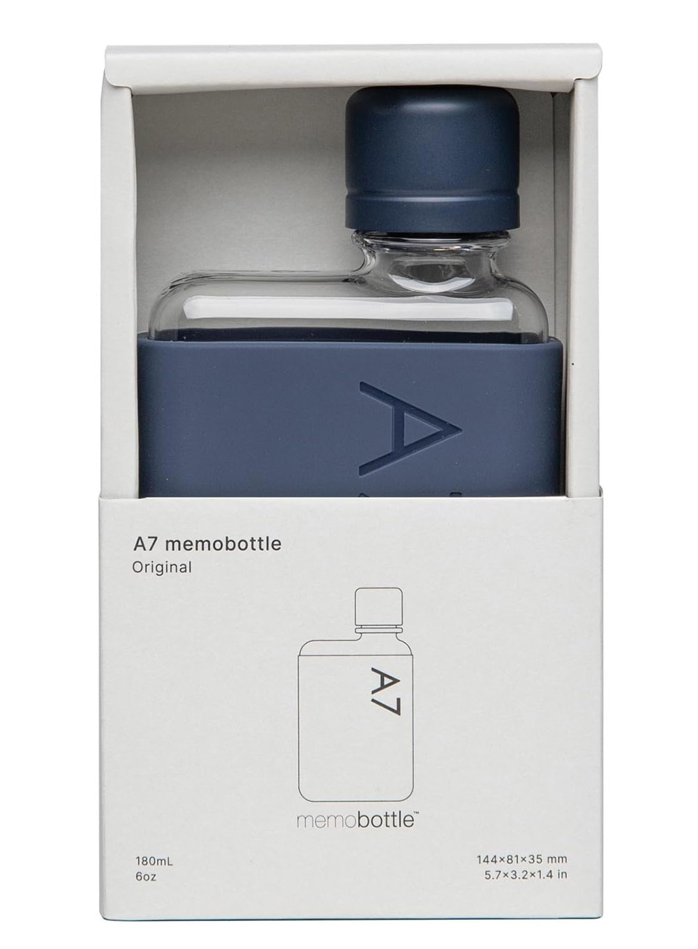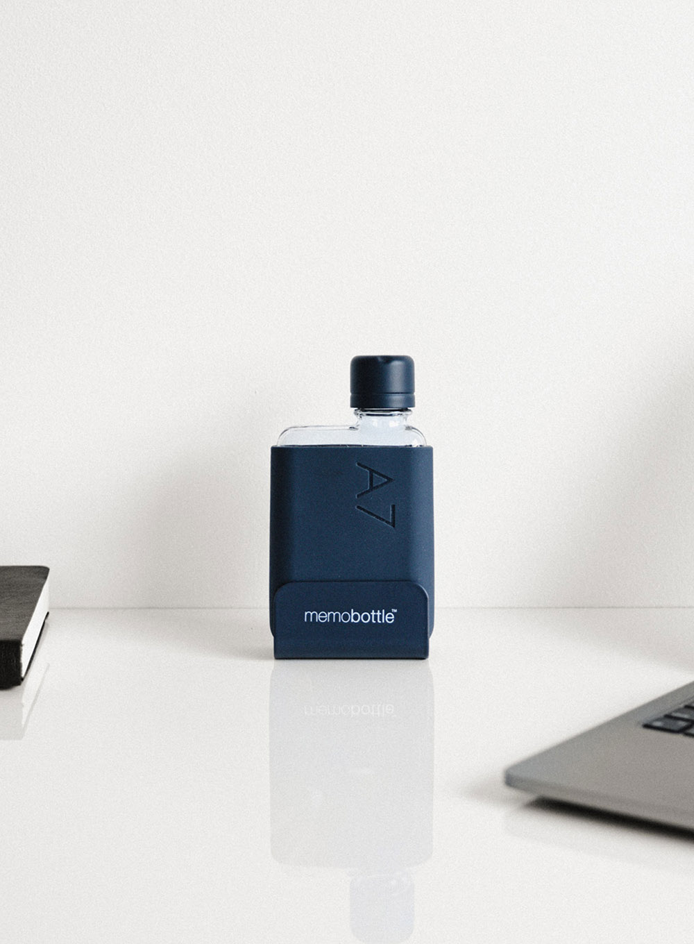 Najmniejsza wśród butelek wielorazowych Memobottle A7 ma pojemność 180 ml. Niby niewiele, ale możesz pić i napełniać ją wielokrotnie w ciągu codziennych obowiązków. Na dodatek jej kompaktowy rozmiar pozwala chować ją do kopertówki czy kieszeni marynarki.