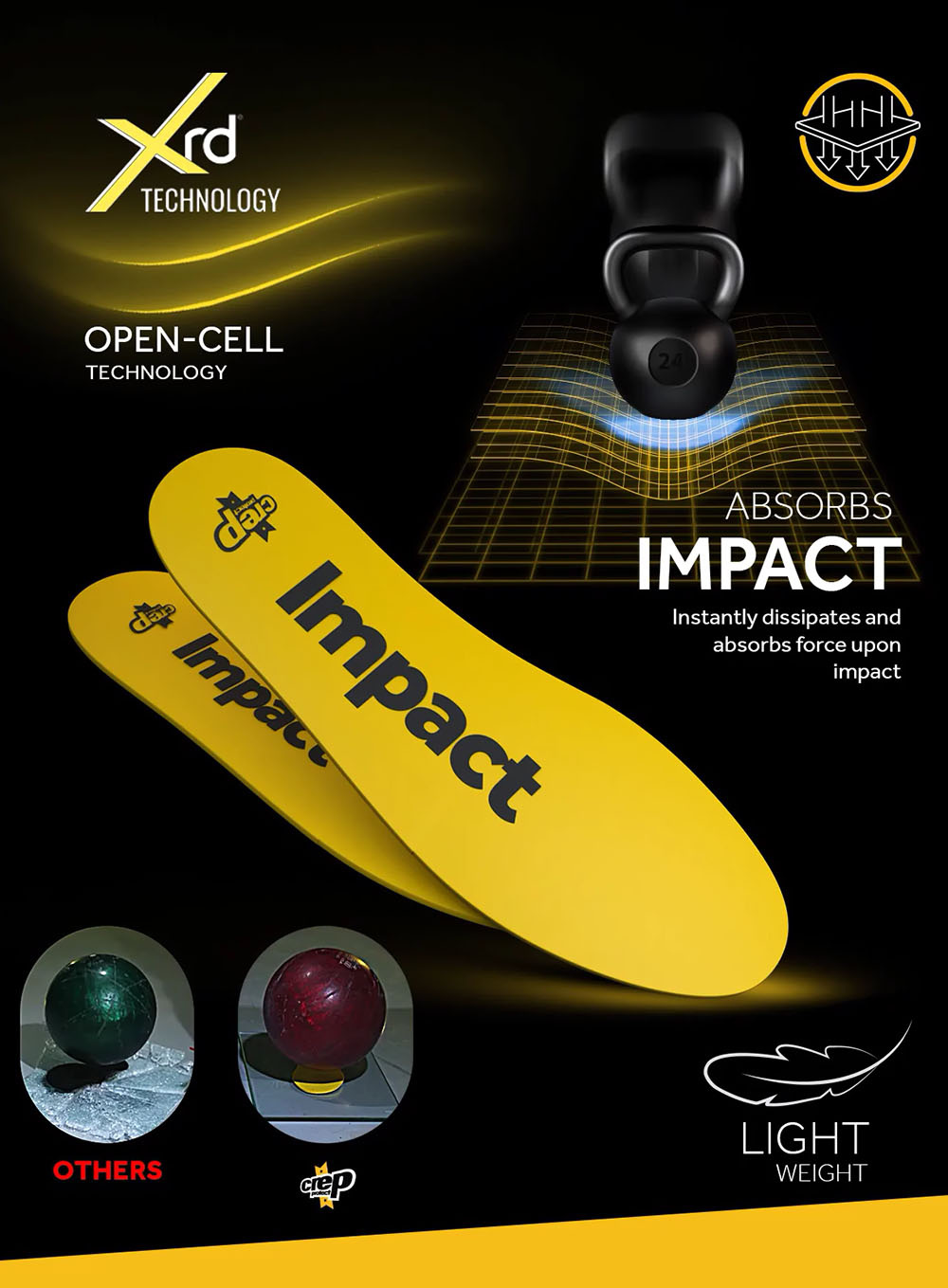 Wkładki do butów Crep Protect Insoles Impact pochłaniające energię, zaprojektowane w oparciu o technologię Poron Xrd, zapewniają natychmiastową ulgę zmęczonym stopom podczas zajęć sportowych.