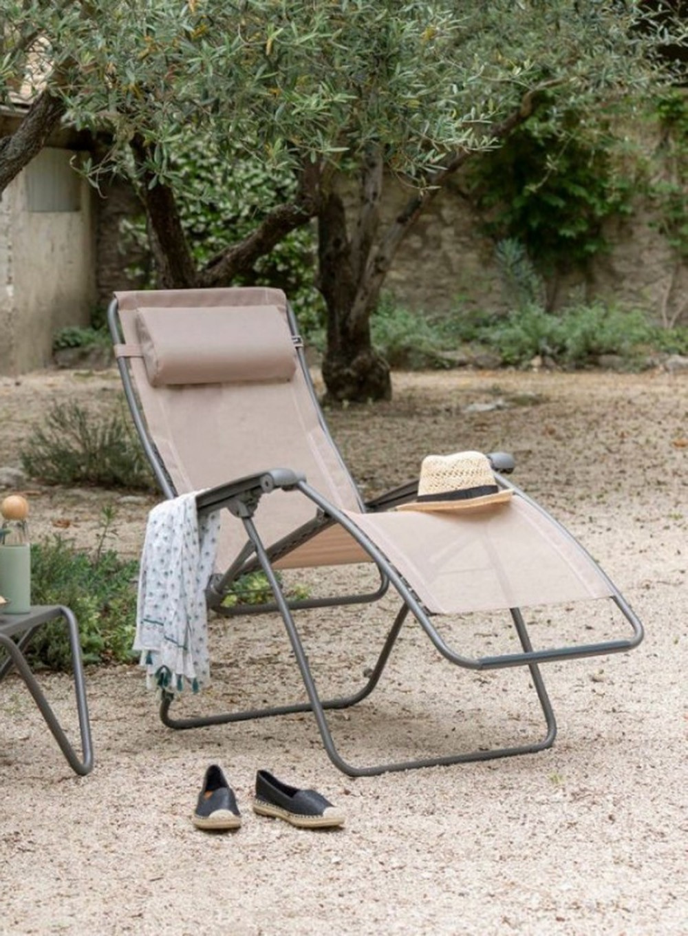 Sekret LAFUMA MOBILIER Relax: fotel został zaprojektowany tak, aby oferować idealną pozycję relaksacyjną. Projekt został opracowany we współpracy z lekarzami, których głównym zaleceniem było osiągnięcie pozycji, w której nogi są uniesione nieco powyżej serca.