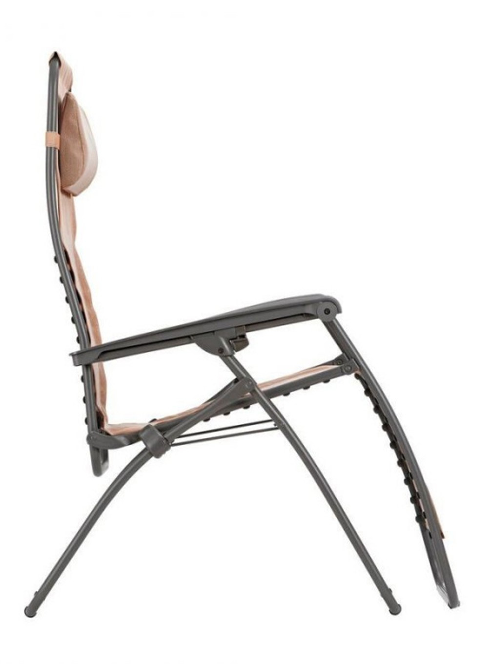 Ergonomiczne oparcie, stabilniejszy komfort i bardzo dobre podparcie pleców z zaczepami sięgającymi aż do ramion. Lekki, składany, wytrzymały i praktyczny, oferuje pozycję "Zero Gravity" dla optymalnego relaksu. Fotel jest nie tylko komfortowy, ale także ekologiczny, tkanina siedziska jest łatwa do wymiany.