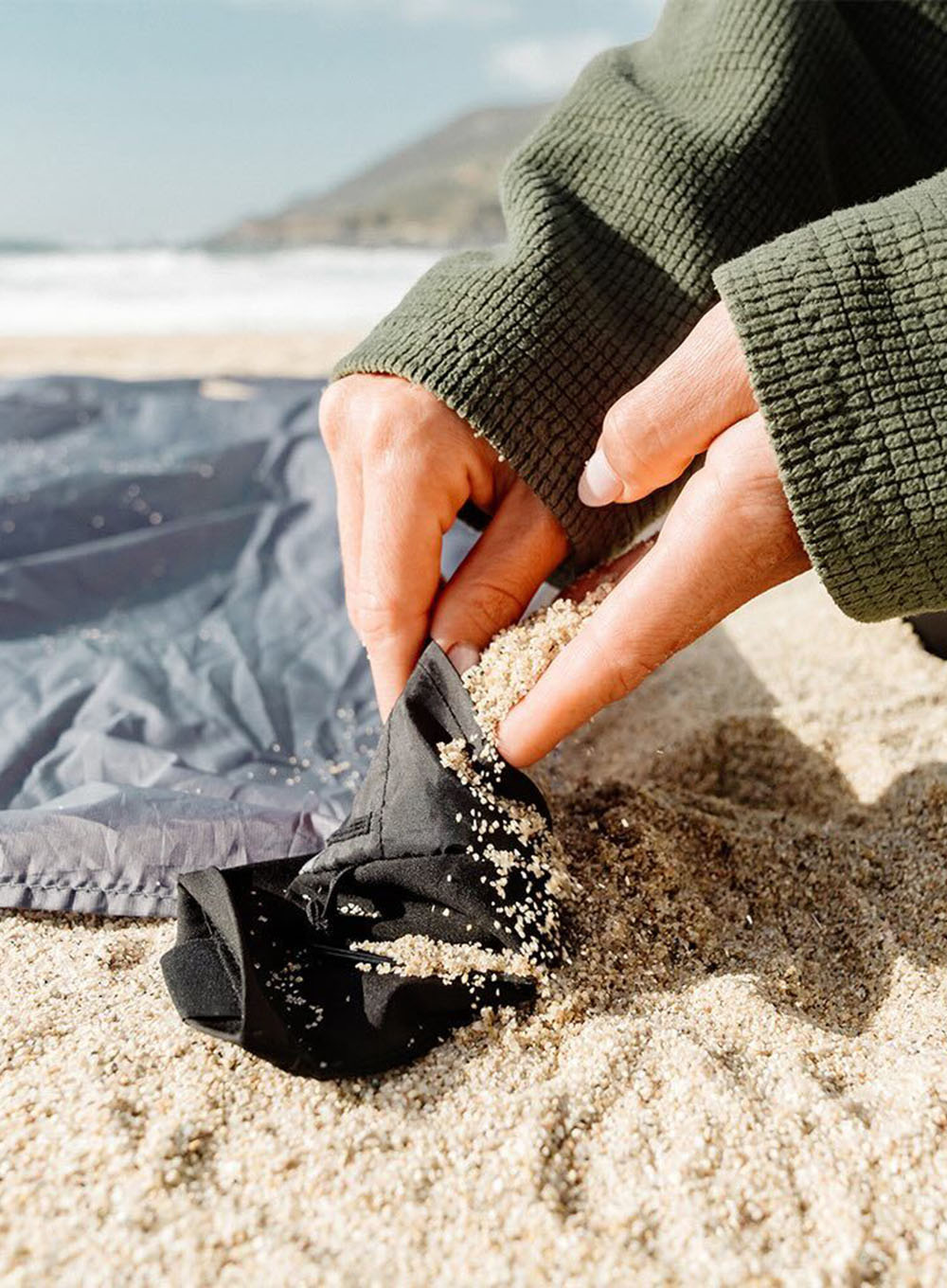 Koc Pocket Blanket™ pomieści od 2 do 4 dorosłych osób (2 w pozycji leżącej lub 4 w pozycji siedzącej). Dzięki niewielkim rozmiarom zmieścisz go nawet w kieszeni plecaka czy spodni. Narożniki koca zostały wyposażone w małe metalowe śledzie umożliwiające przytwierdzenie koca do podłoża. Dodatkowo nieduże kieszonki na piasek sprawiają, że koc można obciążyć także na plaży.