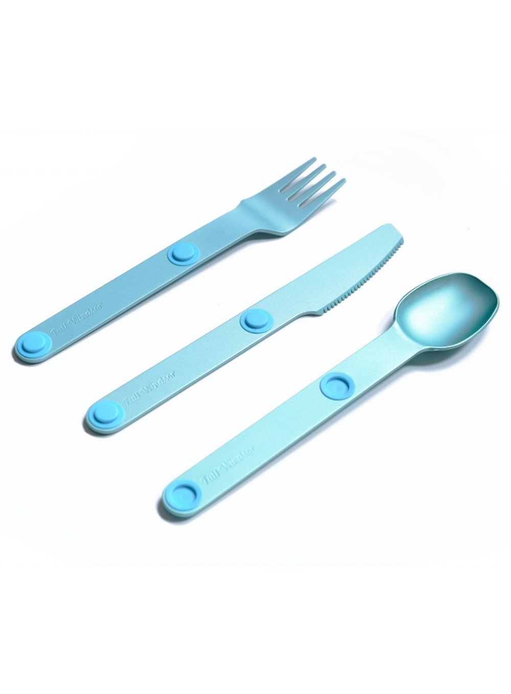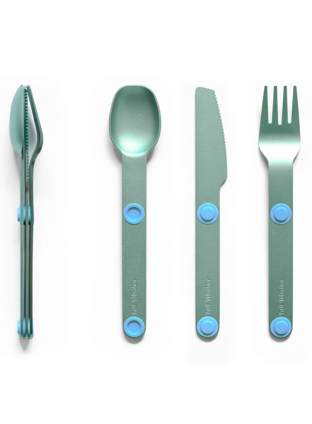 Wbudowane magnesy utrzymują sztućce w porządku i łączą je razem. Kompaktowy zestaw sztućców outdoorowych, dostępny w pięciu kolorach inspirowanych naturą, mieści się w kieszeni, torbie lub plecaku.