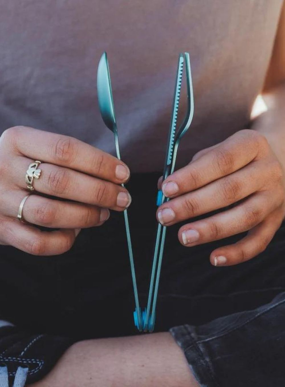 Wielokrotnie nagradzane, przyjazne dla środowiska, przenośne i trwałe rozwiązanie do jedzenia w dowolnym miejscu w pomieszczeniu lub w plenerze. Sztućce wielokrotnego użytku, wykonane z ultralekkiego aluminium lotniczego 7075-T6, są lżejsze i mocniejsze niż tytan i stal nierdzewna.
