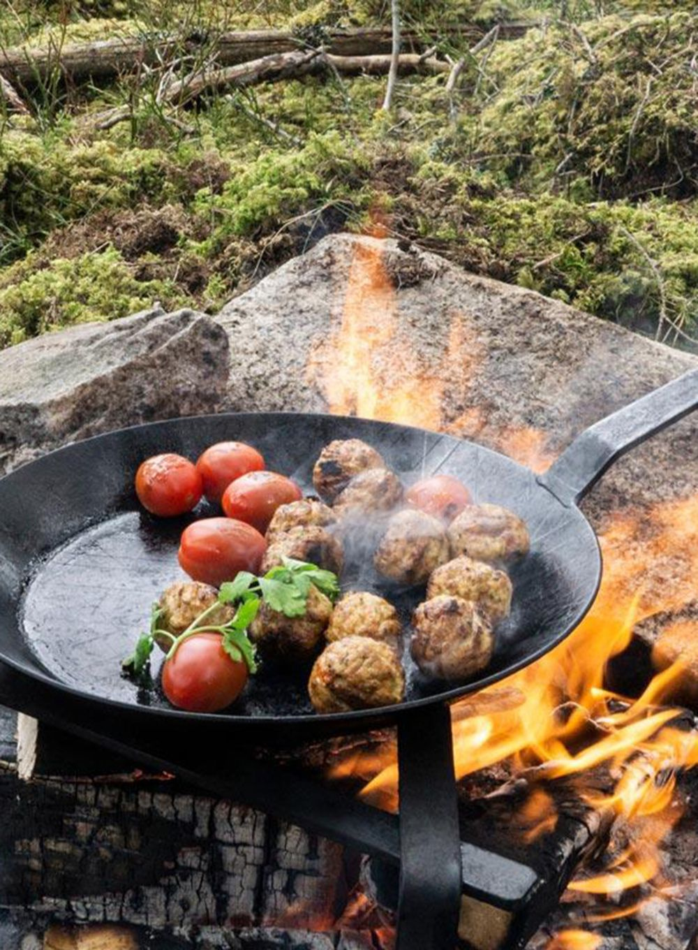 Patelnia z kutego żelaza nadaje się do wszystkich typów kuchenek i gotowania na otwartym ogniu.