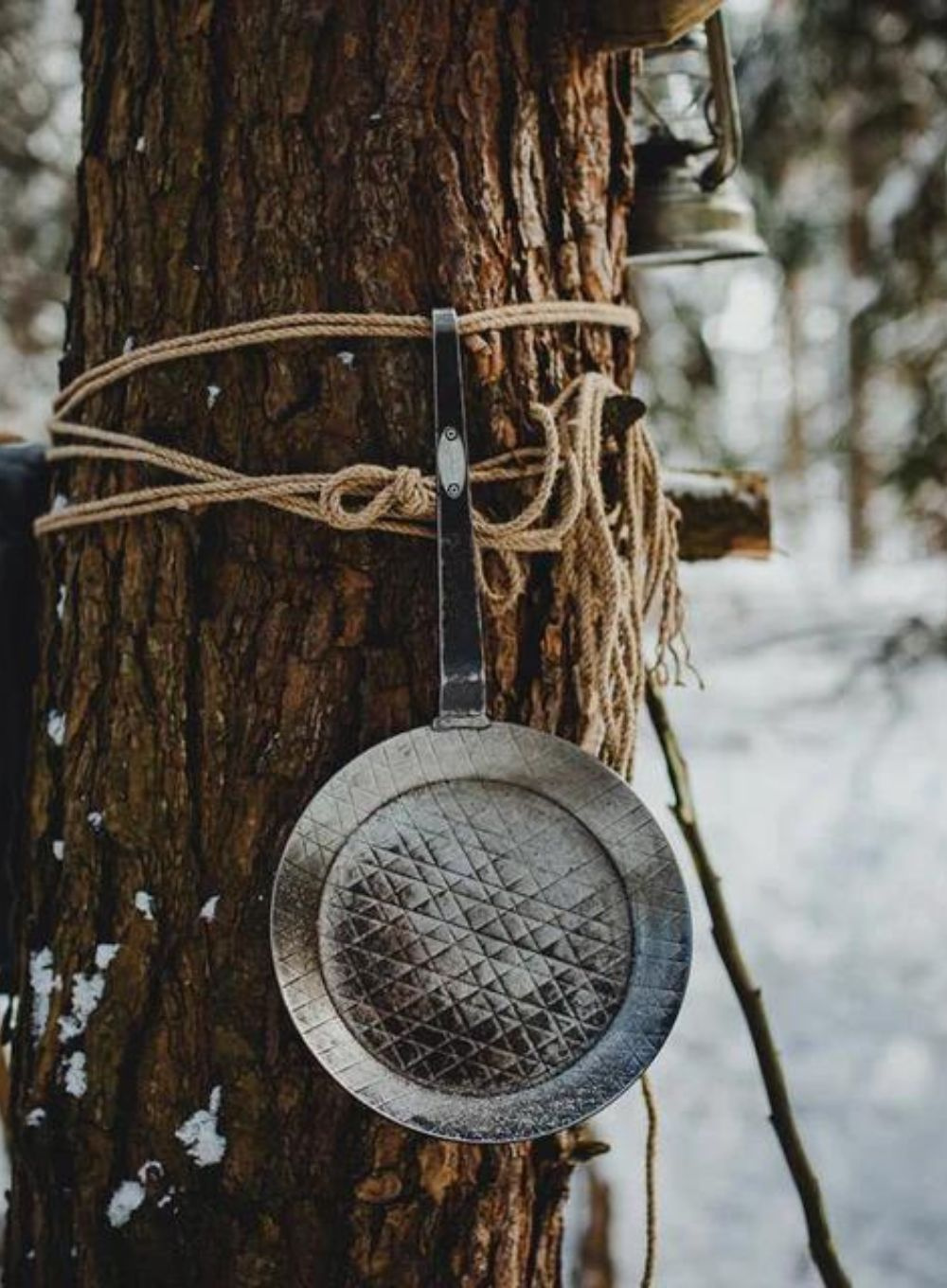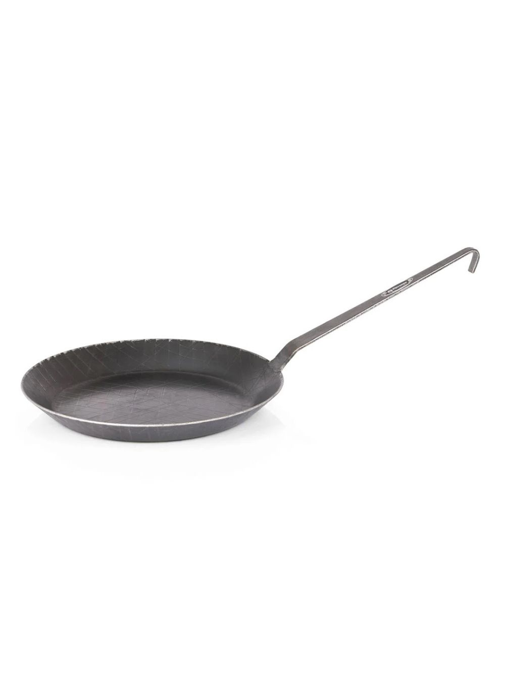 Długi uchwyt z haczykiem zapewnia odpowiednią odległość od źródła ciepła, a patelnię można z łatwością przymocować do plecaka i zabrać ze sobą w podróż.