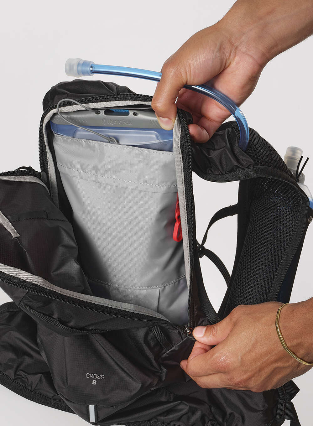 Utrzymuj nawodnienie w czasie treningu sportowego i róznych aktywności outdoorowych - plecak do biegania Salomon Cross 8 to funkcjonalna alternatywa dla kamizelki.