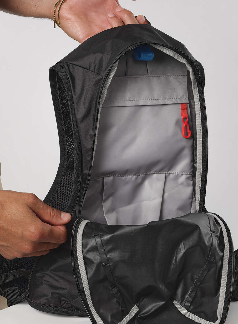 Całkowita pojemność wynosząca 8 litrów jest idealna na krótkie wycieczki lub jednodniowe wycieczki, a zapinane na zamek kieszenie umożliwiają przechowywanie rzeczy, jednocześnie zapewniając do nich szybki dostęp.