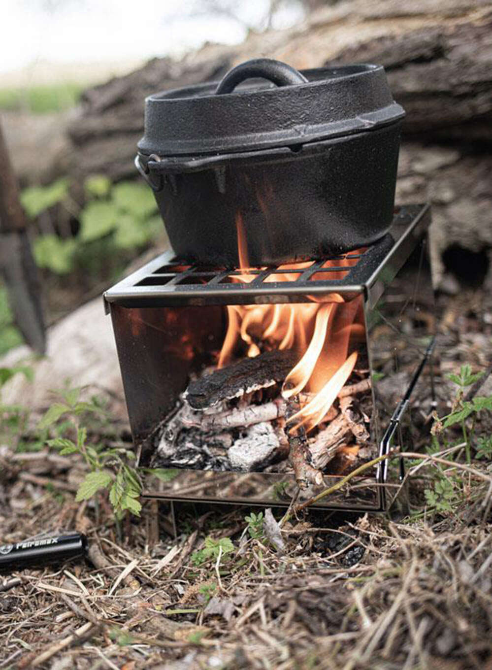 Doskonałe właściwości żeliwa oraz specjalna struktura powierzchni sprawiają, że ciepło jest efektywnie magazynowane i przekazywane. Wstępnie obrobiona powierzchnia sprawia, że solidny żeliwny garnek jest od razu gotowy do użytku. Używa się go na zewnątrz, na otwartym ogniu lub z węglem drzewnym. Podwyższona krawędź pokrywy umożliwia umieszczenie żaru lub węgla drzewnego na garnku. Oznacza to, że garnek nagrzewa się ze wszystkich stron i można w nim nawet upiec chleb.