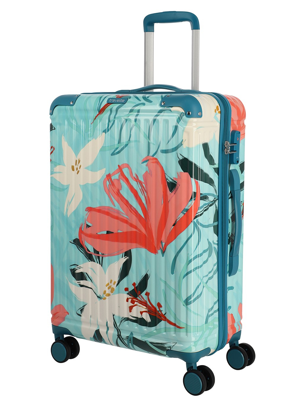 Walizka średnia Travelite Cruise Trolley M Print - turquoise lily