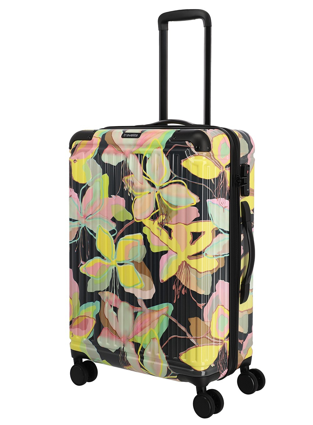 • Walizka średnia Travelite Cruise Trolley M Print - yellow orchid