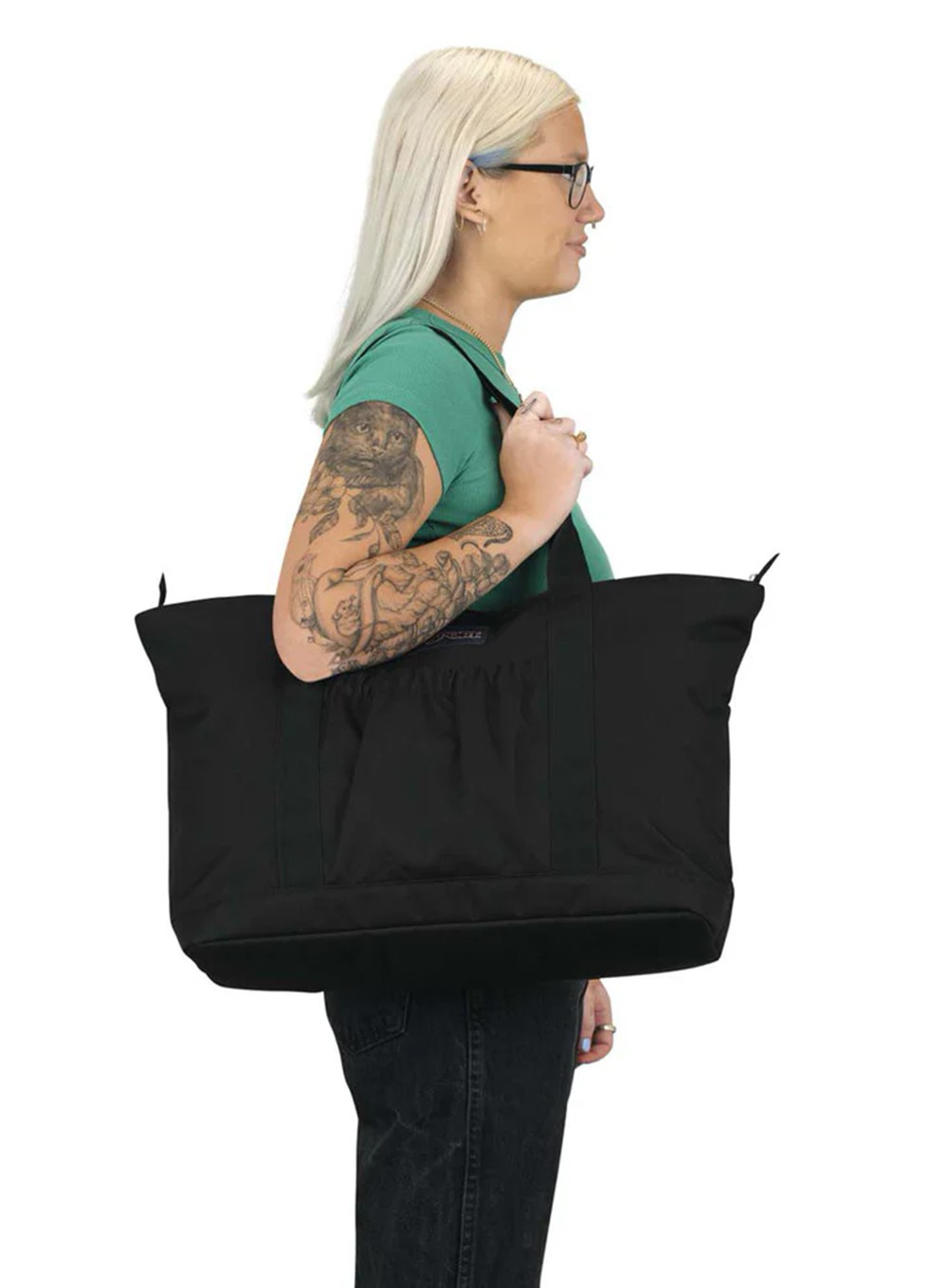 Niezależnie od tego, czy masz je na ramieniu, czy obok, przechowuj najważniejsze rzeczy w torbie JanSport Daily Tote. Zapinana na zamek błyskawiczny główna komora utrzymuje wszystkie rzeczy na miejscu oraz kieszenie wewnętrzne i przednia, dzięki którym najważniejsze akcesoria są w zasięgu ręki.
