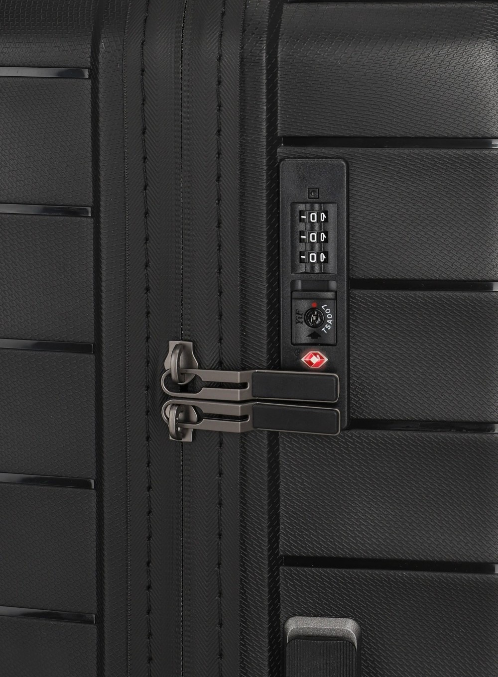 Wszystkie walizki Travelite z serii Mooby posiadają wbudowany zamek TSA, dzięki czemu w razie potrzeby celnicy mogą otworzyć zamek bez powodowania uszkodzeń, a Twoje rzeczy są zabezpieczone przed kradzieżą.