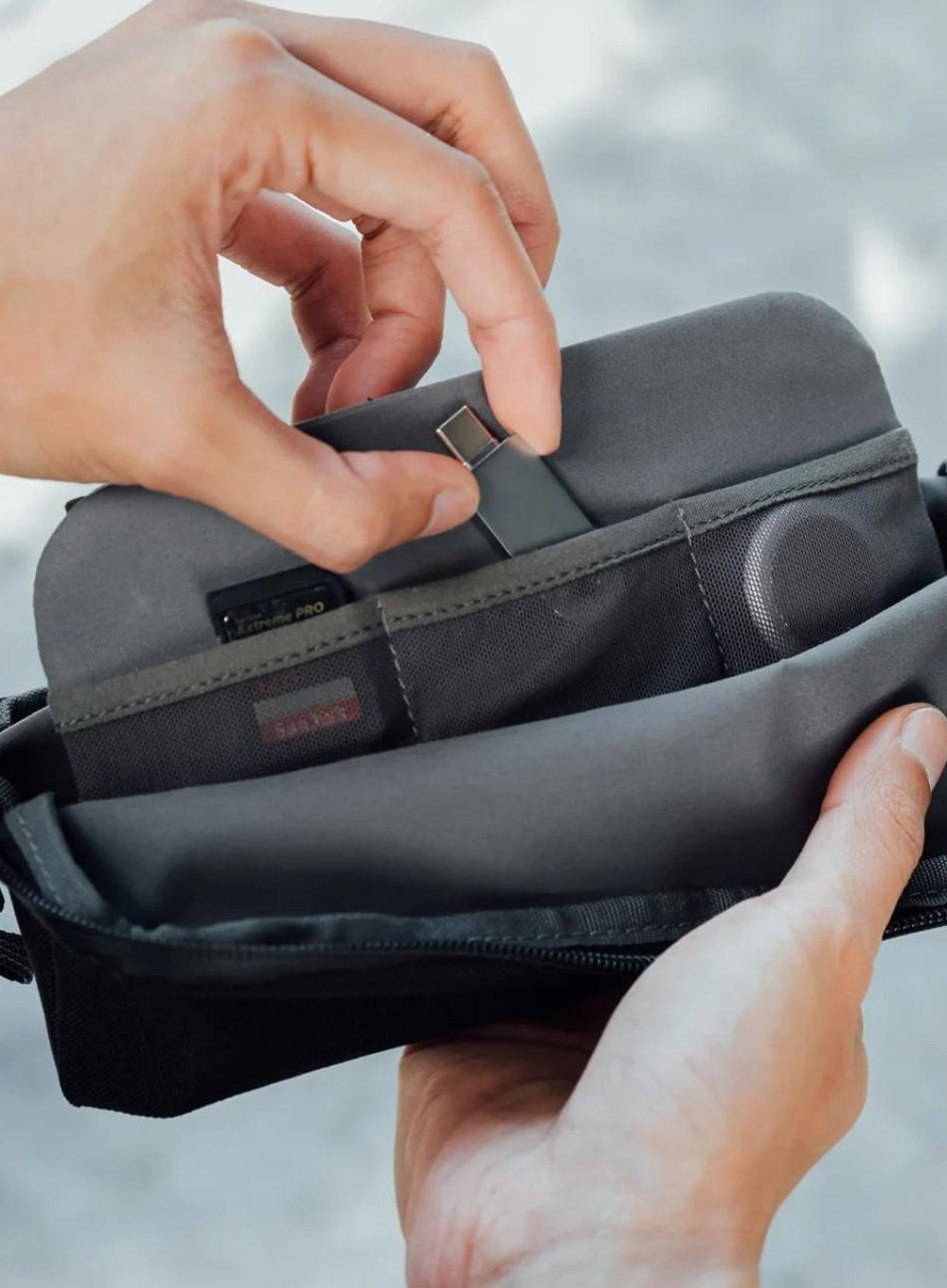 Koniec z grzebaniem w głębinach saszetki w poszukiwaniu małych przedmiotów. Zintegrowany składany panel ułatwia szybkie znalezienie dokładnie tego, czego potrzebujesz.